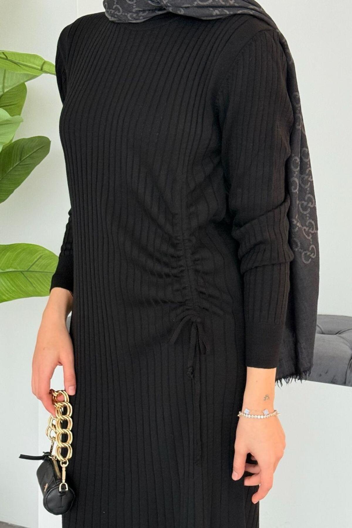 Yandan Büzgülü Fi Triko Elbise Siyah Yandan Büzgülü Fi Triko Elbise Siyah 24870 Standart