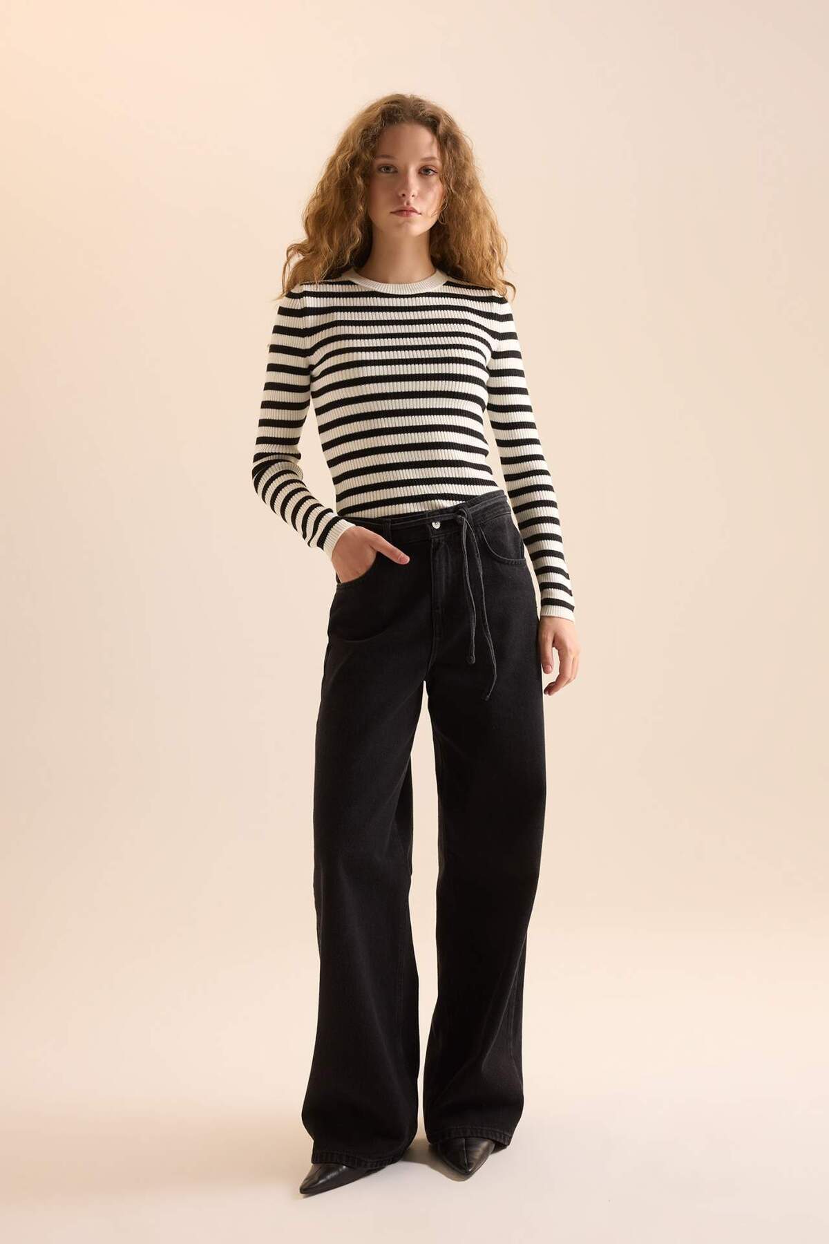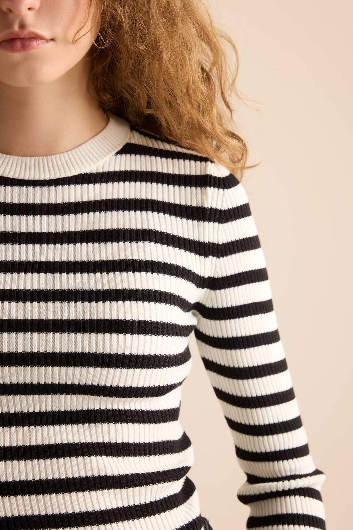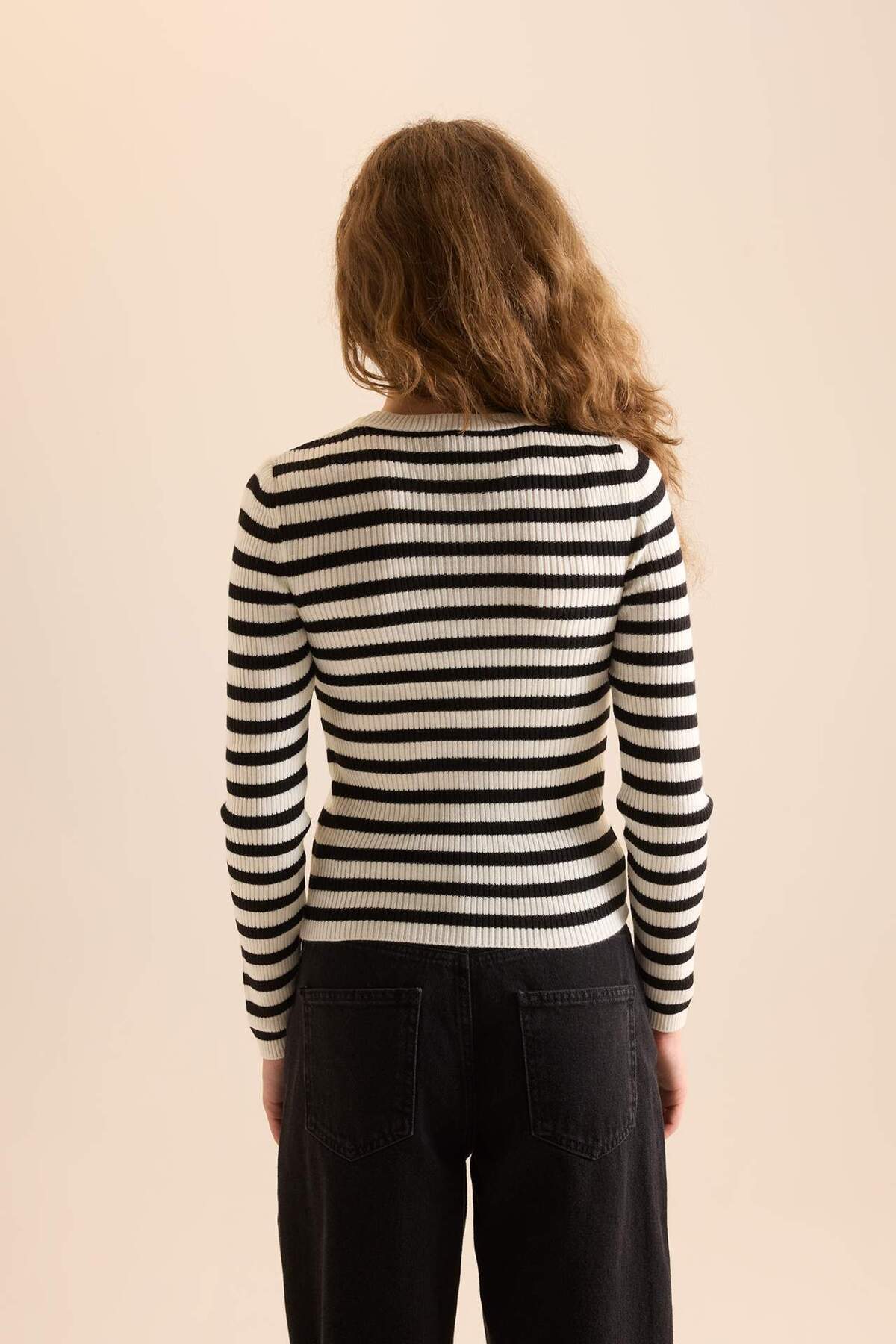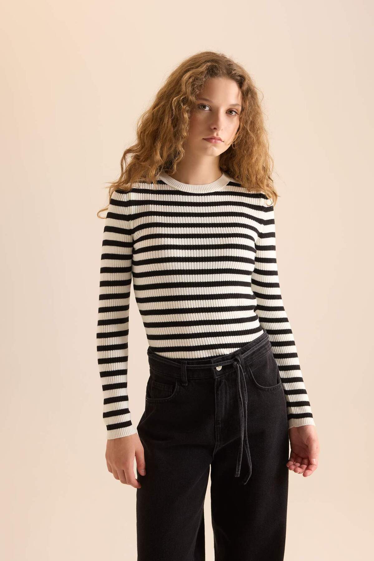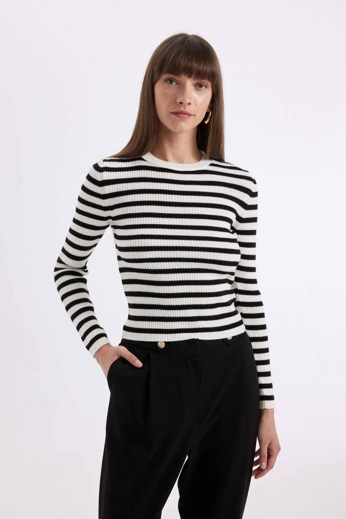 Fitted Bisiklet Yaka Çizgili Ribana Triko Kazak D4882AXNS Fitted Bisiklet Yaka Çizgili Ribana Triko Kazak D4882AXNS 2XL