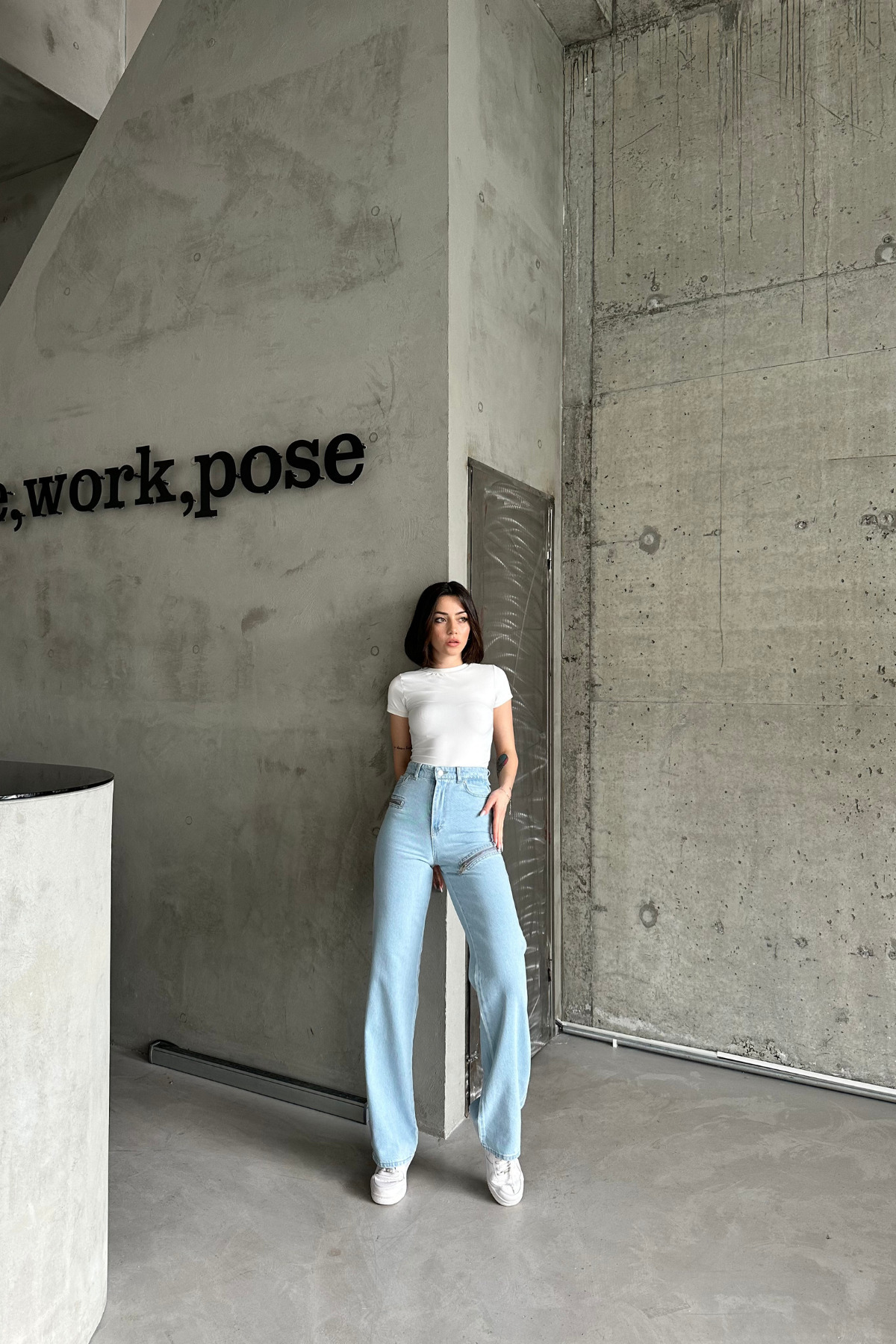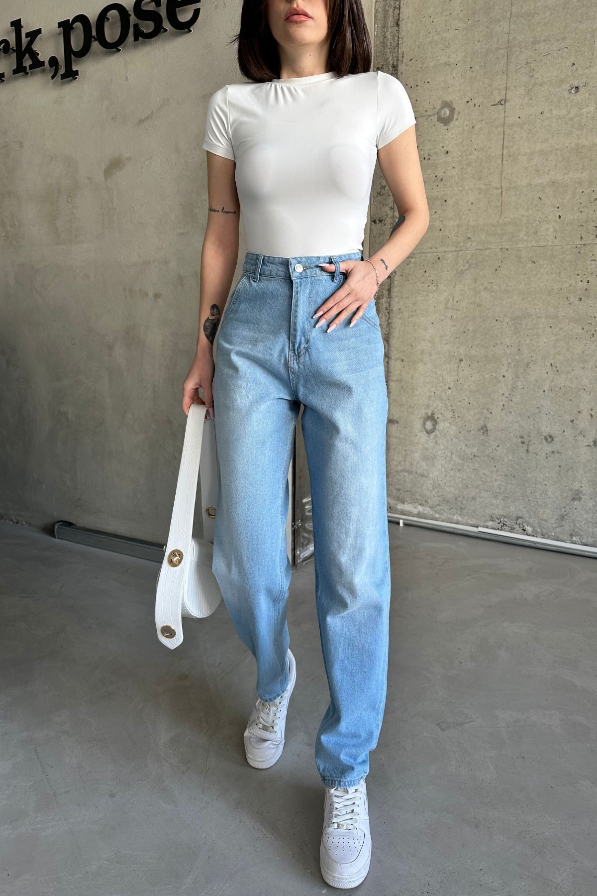 Kadın Bol Yüksel Bel Palazzo B. Mavi Kot Pantolon Kadın Bol Yüksel Bel Palazzo B. Mavi Kot Pantolon 108XRDN 31