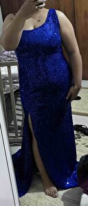 Trend Kadife Yırtmaçlı Elbise Saks 583150-2 Trend Kadife Yırtmaçlı Elbise Saks 583150-2 BLK 46