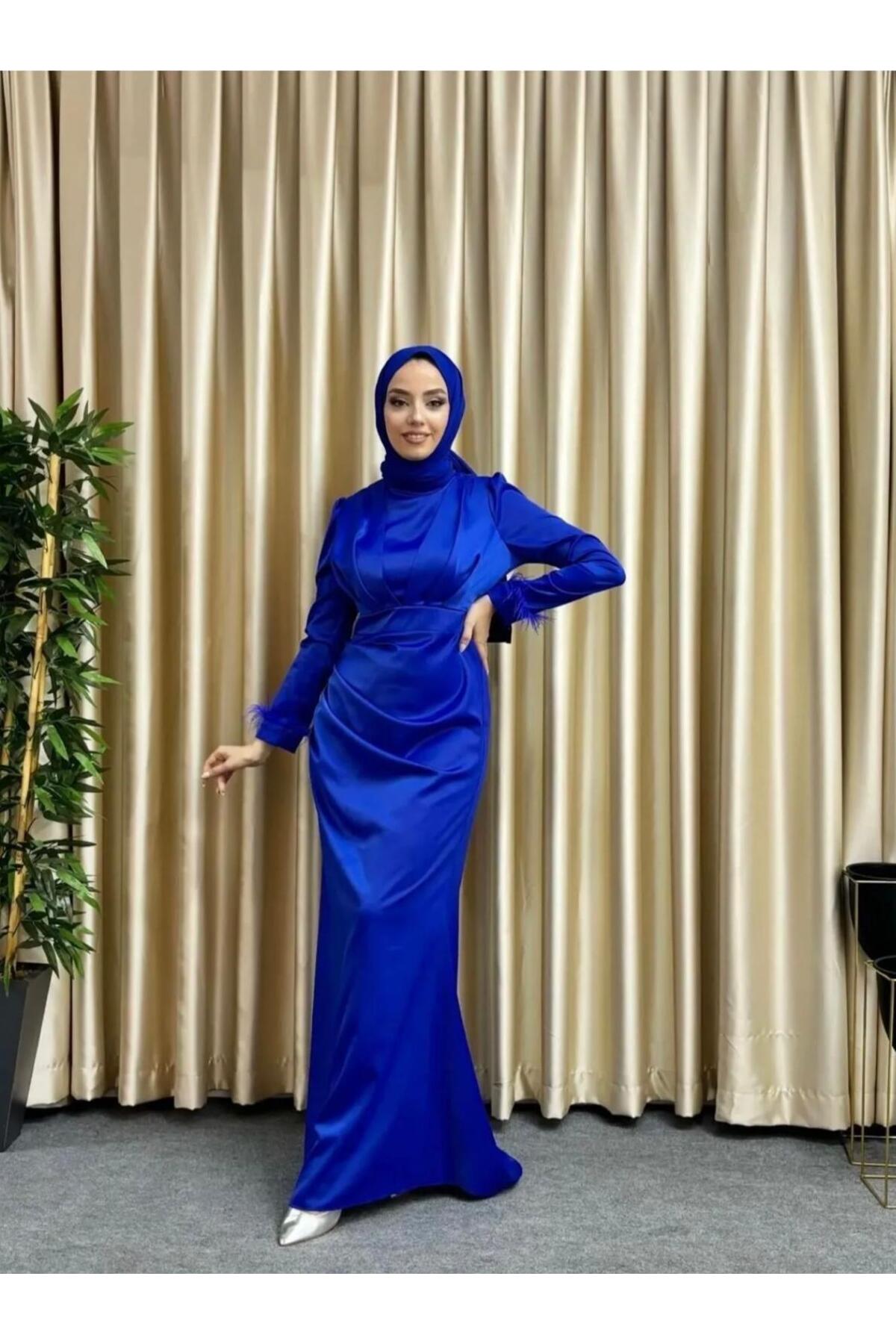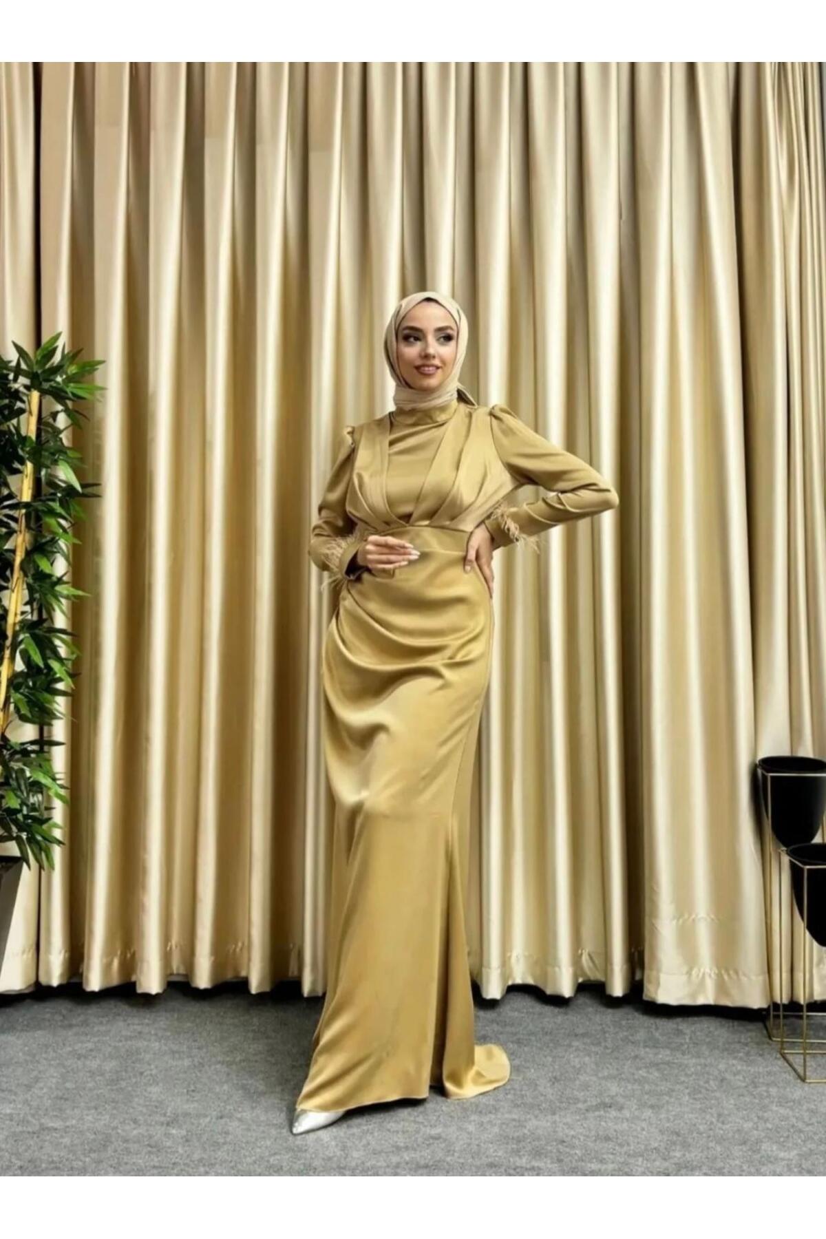 Kolları Püsküllü Saten Tesettür Abiye Kolları Püsküllü Saten Tesettür Abiye 23236 42