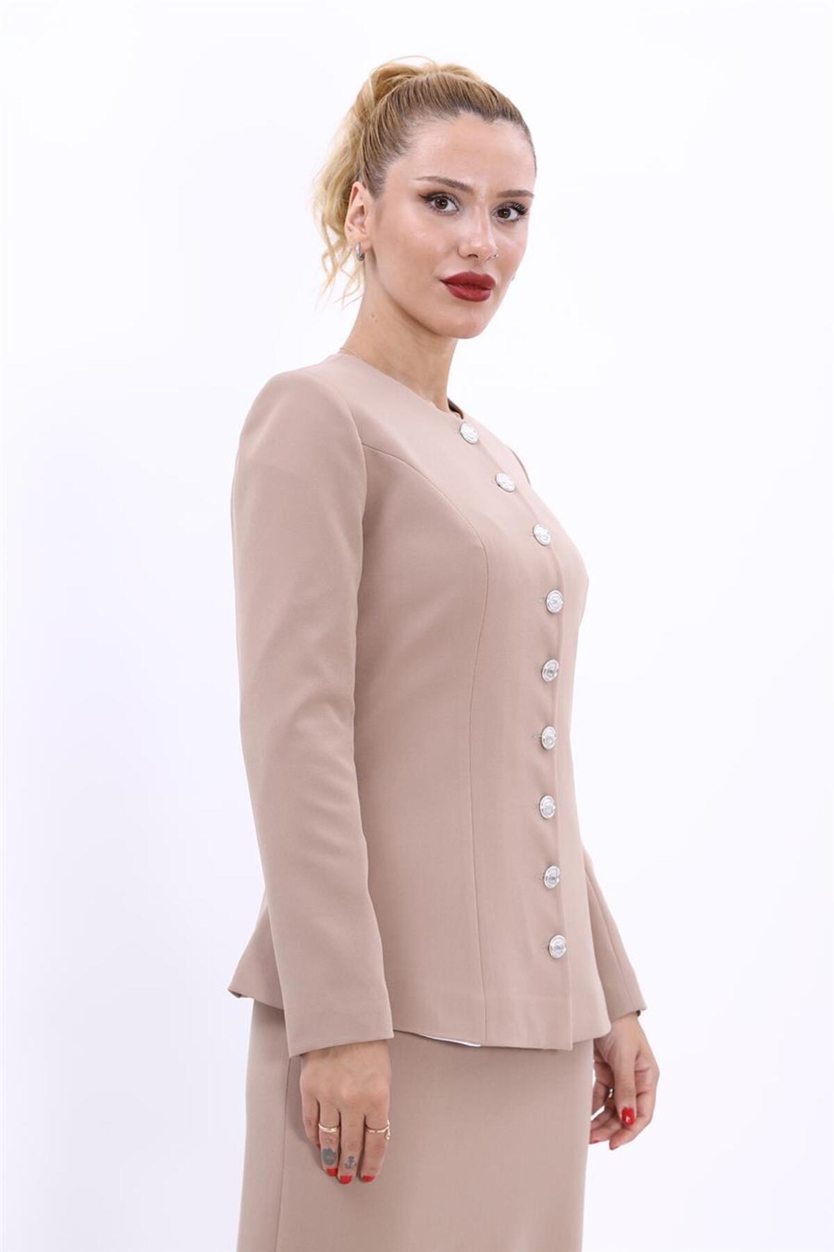 Sıfır Yaka Boydan Düğmeli Ceket-Taş Sıfır Yaka Boydan Düğmeli Ceket-Taş 1064100 44