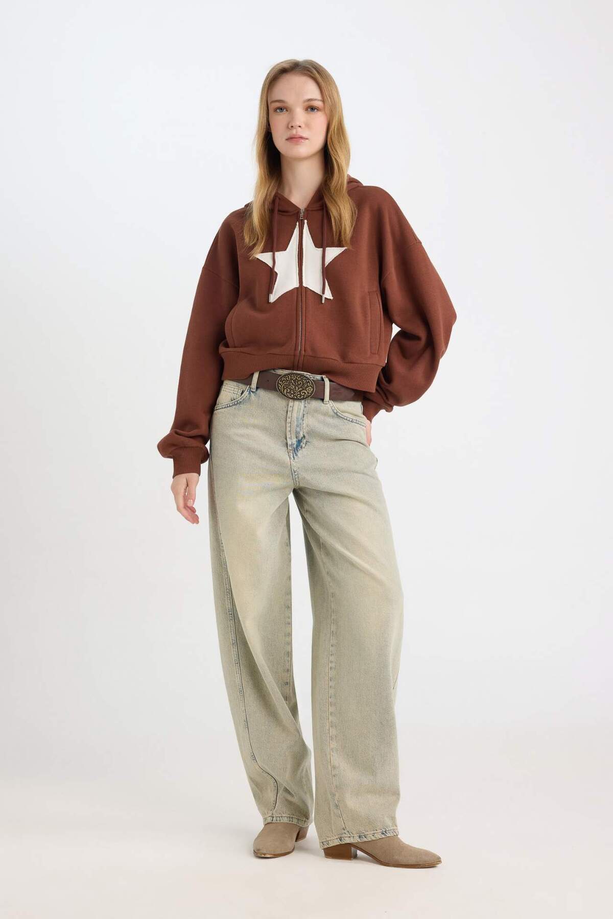 Coool Loose Fit Kapüşonlu Baskılı Kalın Kanguru Cepli Fermuarlı Sweatshirt D5317AX24AU Coool Loose Fit Kapüşonlu Baskılı Kalın Kanguru Cepli Fermuarlı Sweatshirt D5317AX24AU 3166465 XL