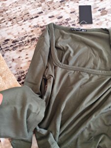 Kadın Haki Kare Yaka Uzun Kollu Crop Bluz Kadın Haki Kare Yaka Uzun Kollu Crop Bluz LE002 L
