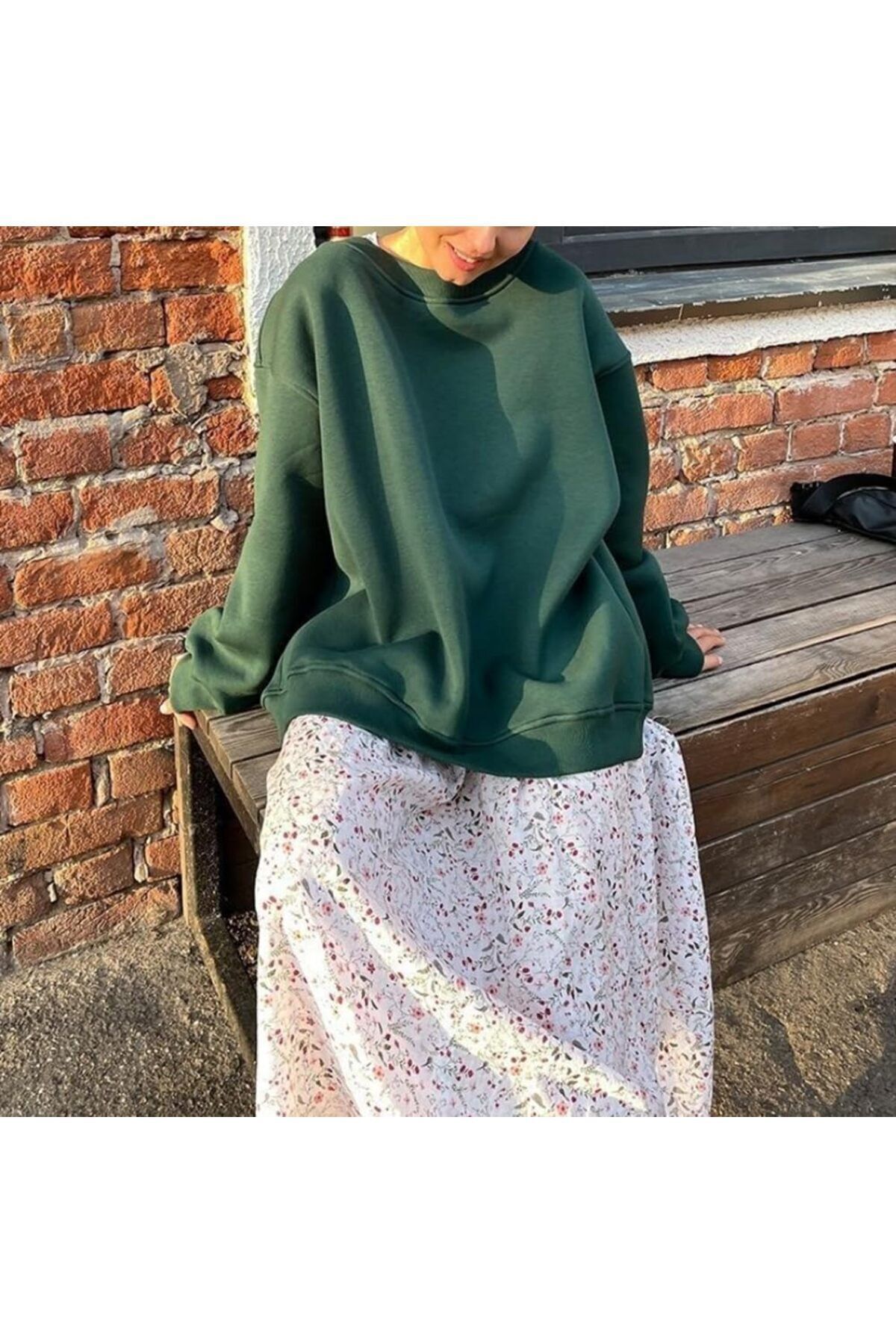 Kadın Oversize Kalın Şardonlu Yumuşak Bisiklet Yaka Sweatshirt Koyu Yeşil Kadın Oversize Kalın Şardonlu Yumuşak Bisiklet Yaka Sweatshirt Koyu Yeşil SWT.0012 2XL