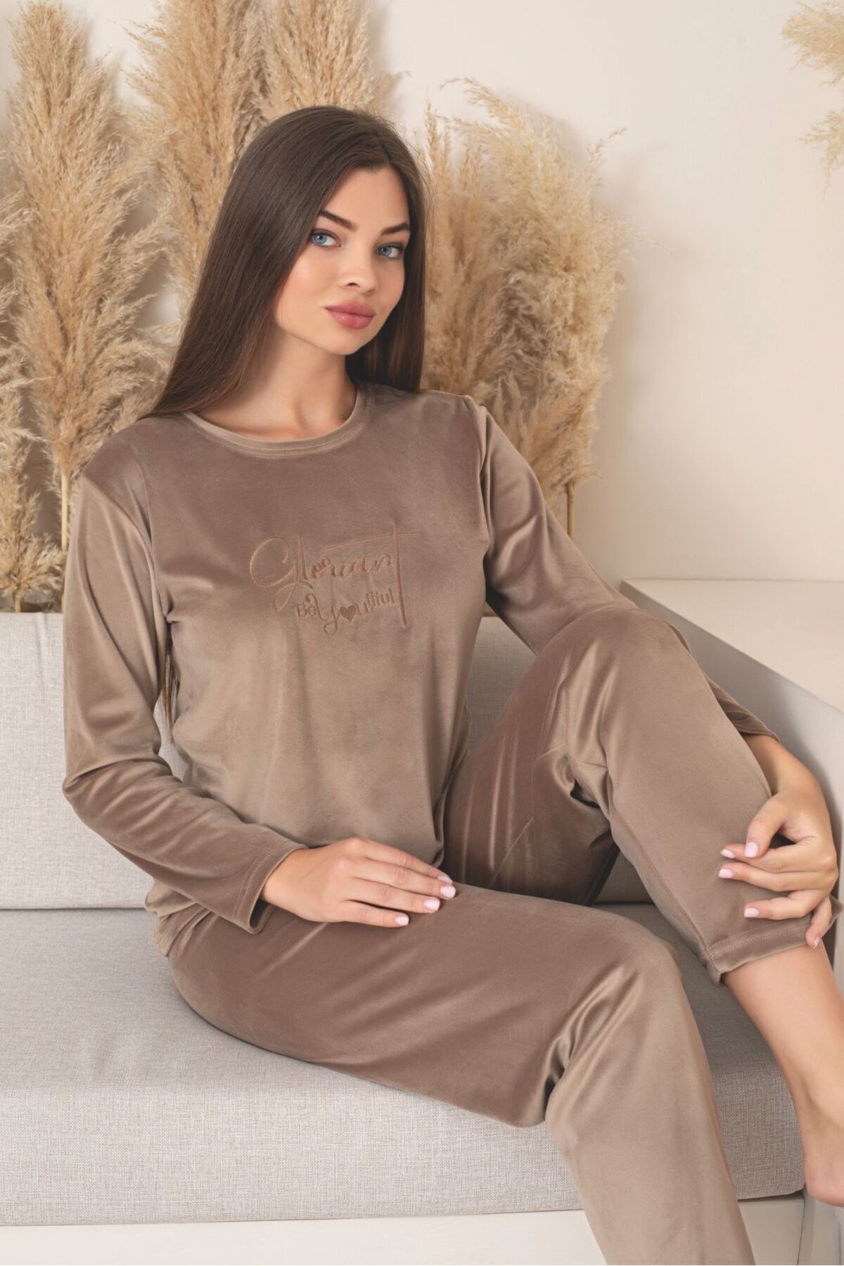 Kadın Kadife Pijama Takımı Kadın Kadife Pijama Takımı 8402 2XL