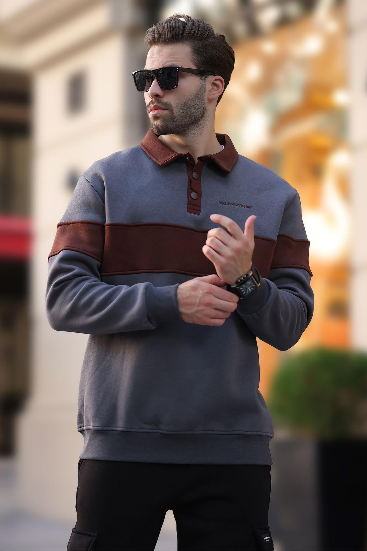 Füme Kapüşonlu Renk Bloklu Cep Detaylı Erkek Sweatshirt 7044 Füme Kapüşonlu Renk Bloklu Cep Detaylı Erkek Sweatshirt 7044 2XL