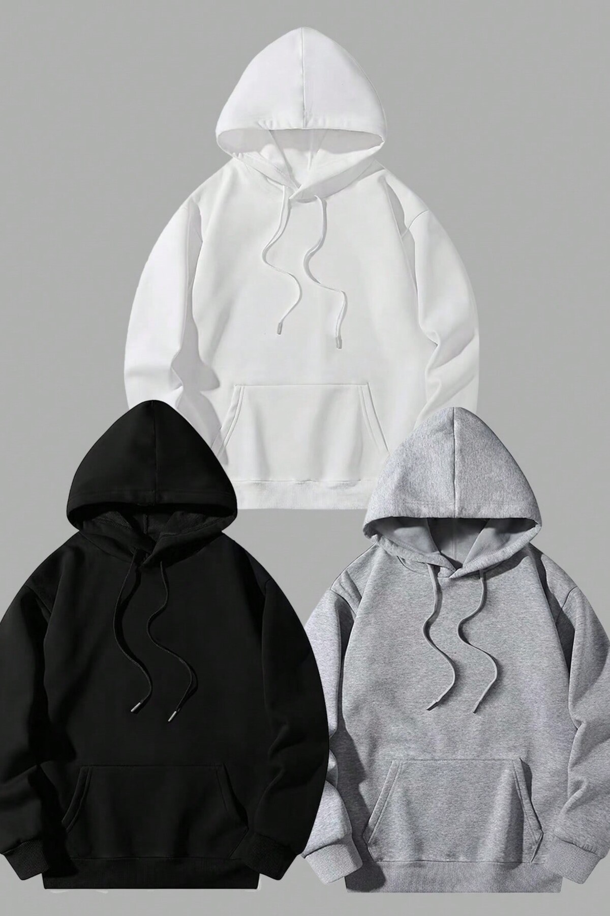 Unisex 3'lü Siyah Beyaz Nefti Yeşil Kapüşonlu Oversize Sweatshirt Unisex 3'lü Siyah Beyaz Nefti Yeşil Kapüşonlu Oversize Sweatshirt 3lüsweat XL