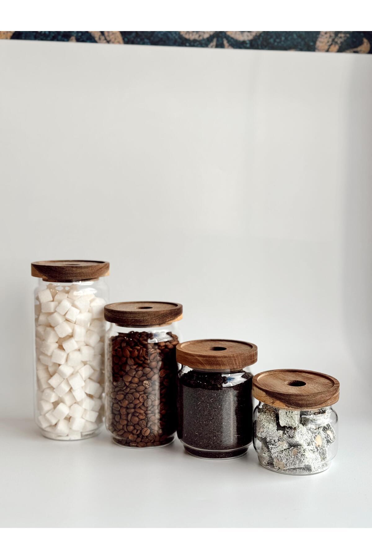 Ahşap Kapaklı 4 Lü Büyük Boy Cam Saklama Kabı 1000 ml Cam0315 Ahşap Kapaklı 4 Lü Büyük Boy Cam Saklama Kabı 1000 ml Cam0315 K08259 تک سایز