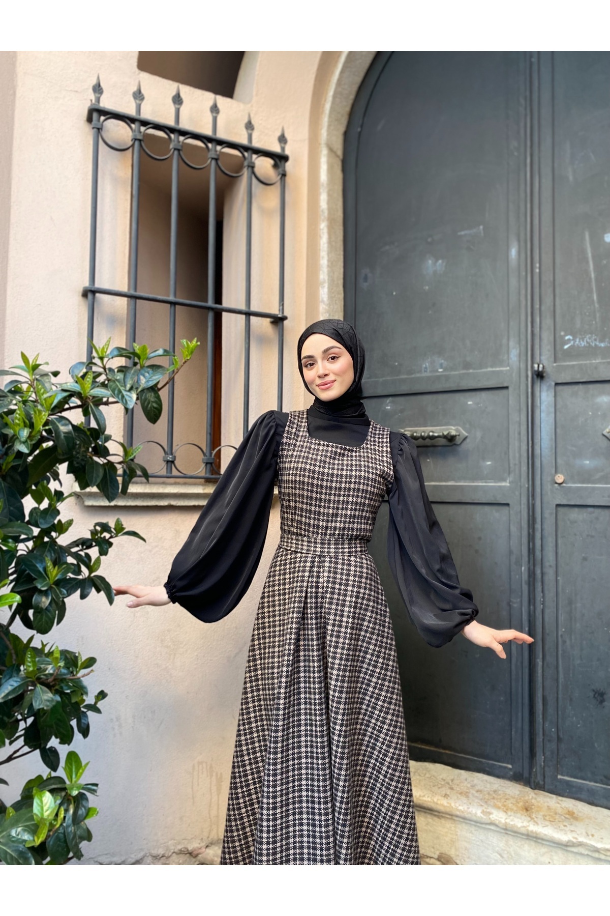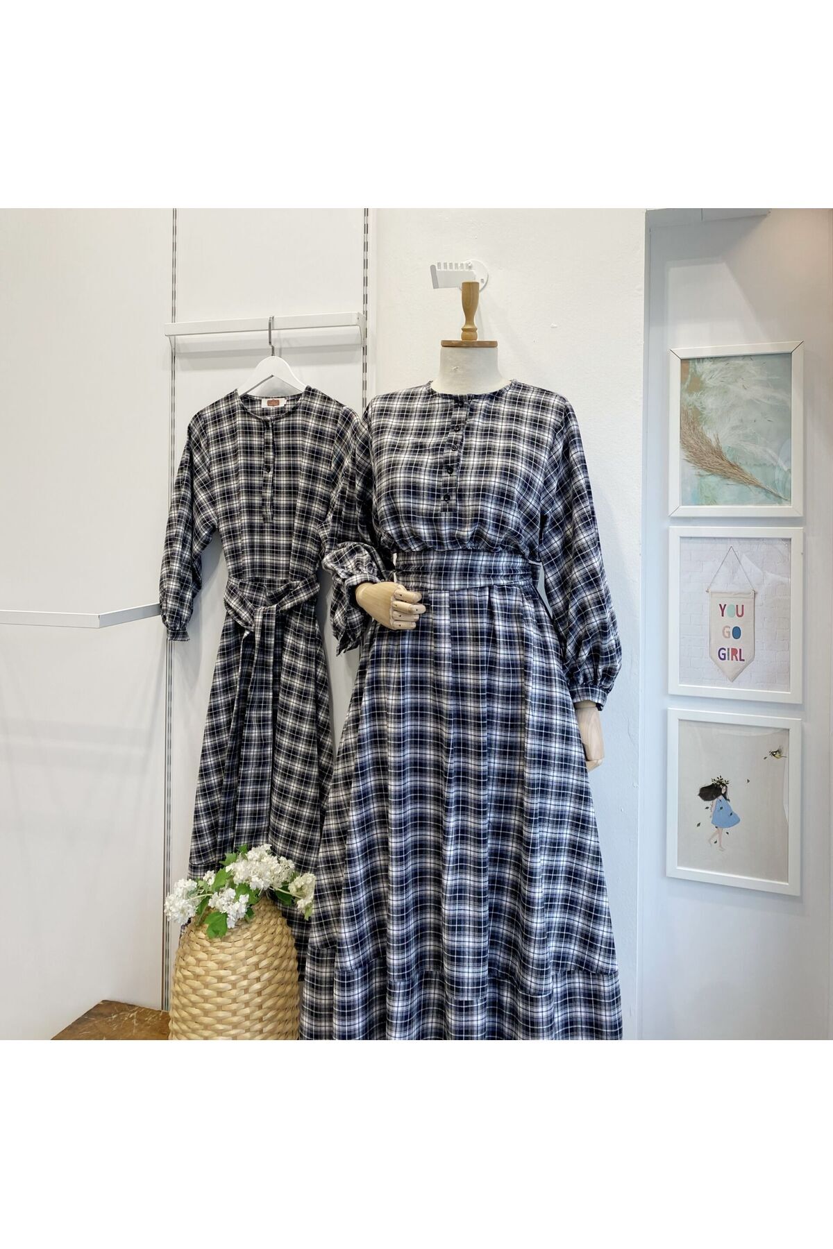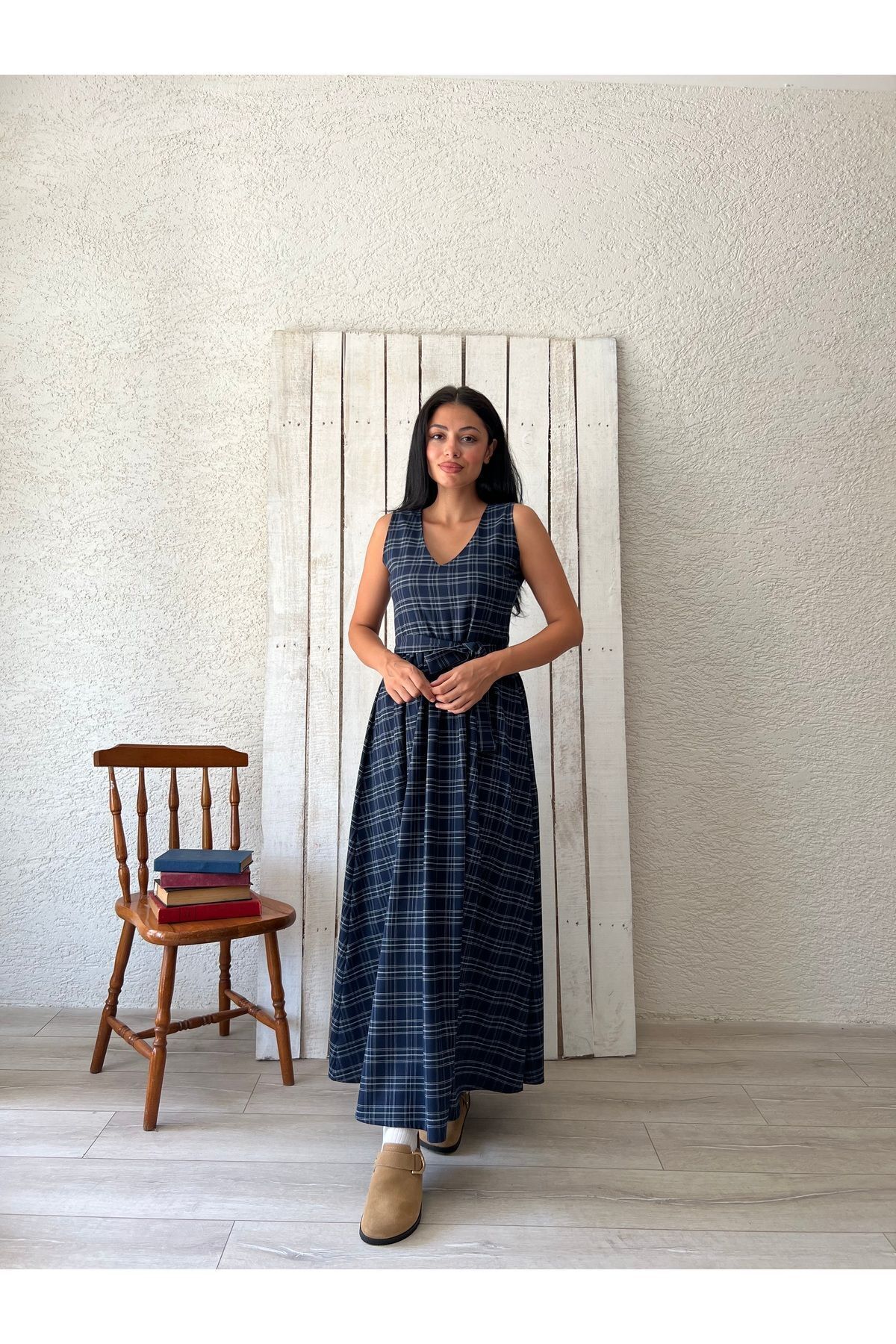 Uzun Lacivert Ekose Kloş Jile Elbise Uzun Lacivert Ekose Kloş Jile Elbise KCGM11661 2XL-3XL