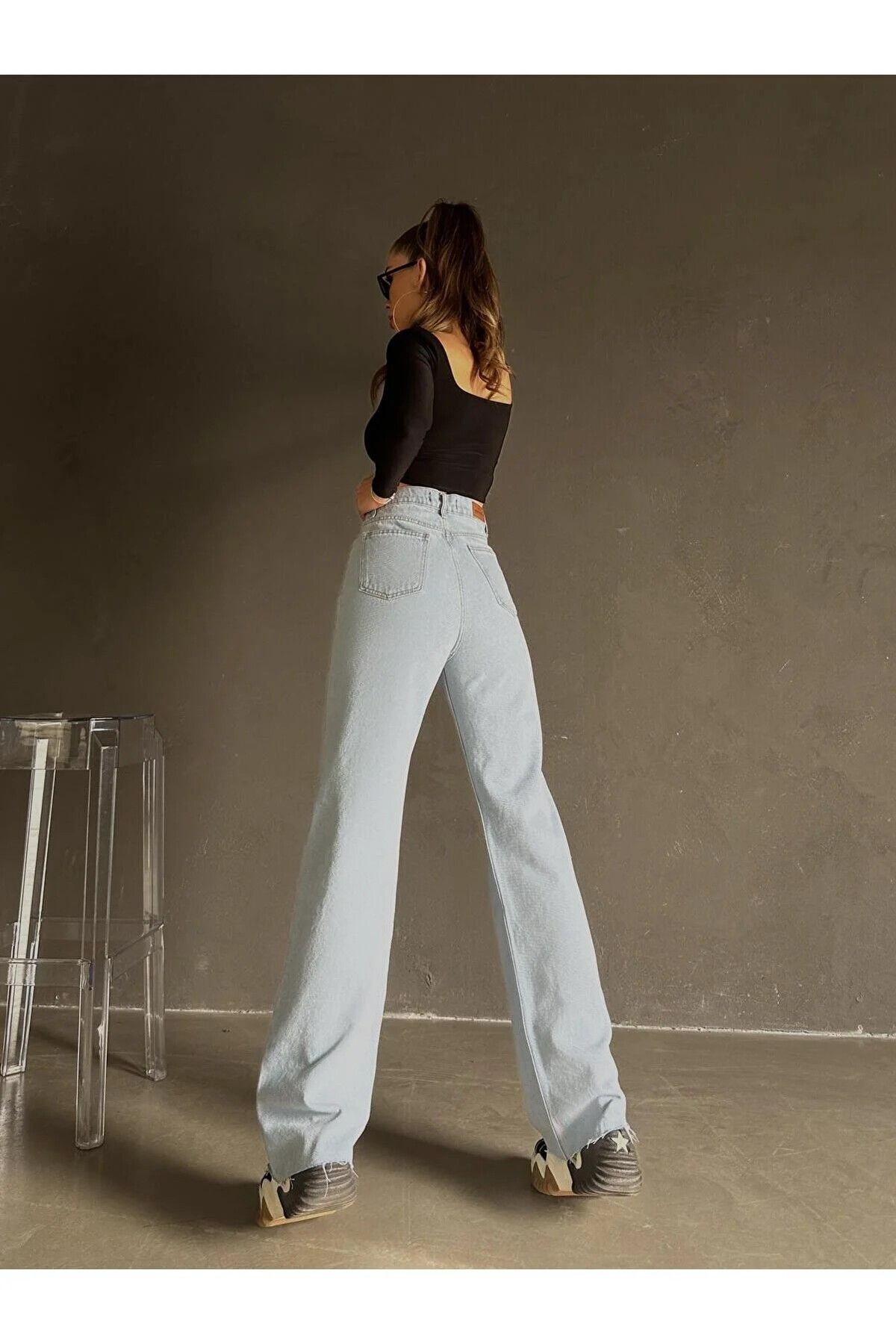 A.c.a.i.p Füme Kar Yıkama Likralı Süper Yüksek Bel Salaş Paça Denim Palazzo Pantolon A.c.a.i.p Füme Kar Yıkama Likralı Süper Yüksek Bel Salaş Paça Denim Palazzo Pantolon MKLS1 44