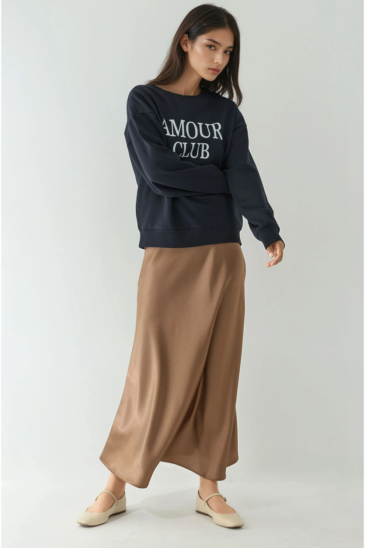 Yüksek Bel Saten Midi Etek Yüksek Bel Saten Midi Etek W1000001713 2XL