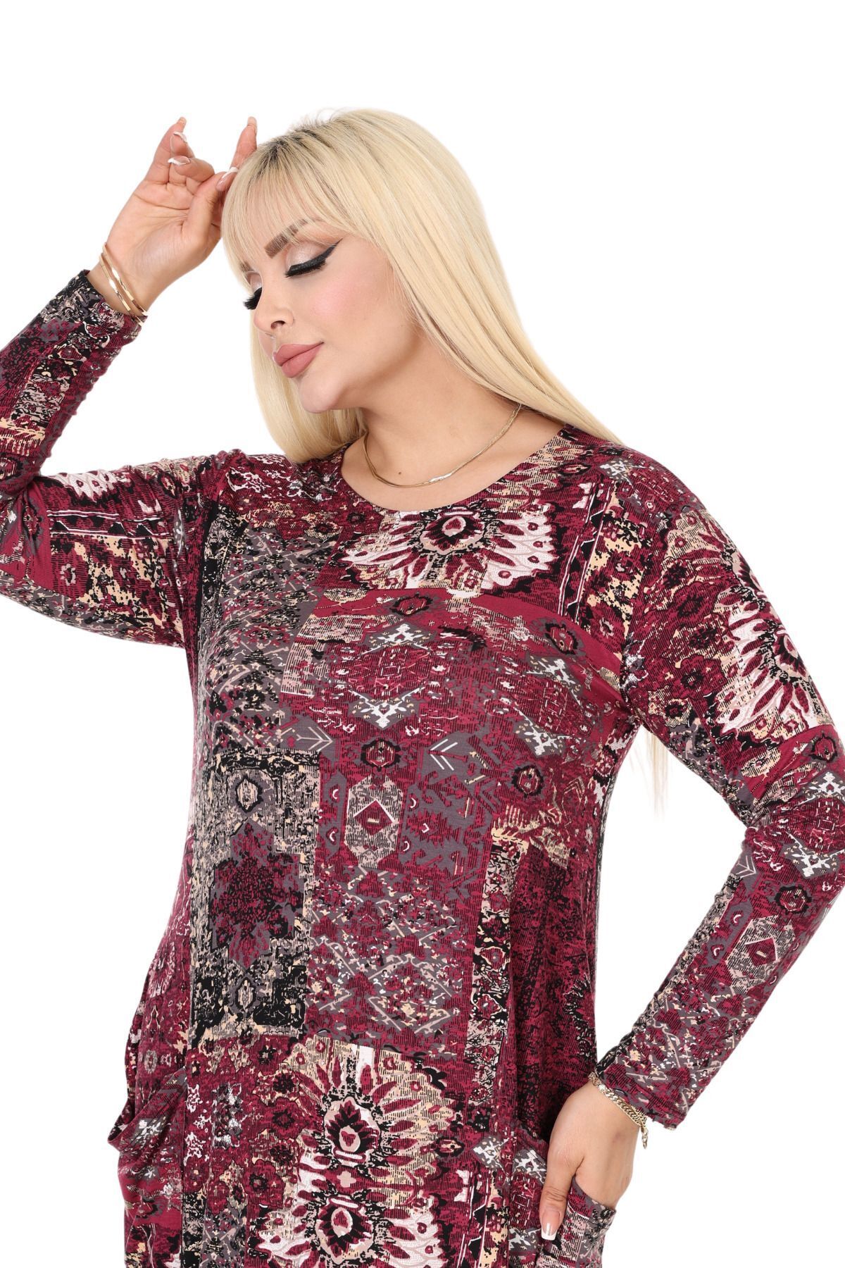Kadın Bordo Etnik Desen Uzun Kollu Cepli Uzun Elbise Kadın Bordo Etnik Desen Uzun Kollu Cepli Uzun Elbise CPL-ETC 54-56