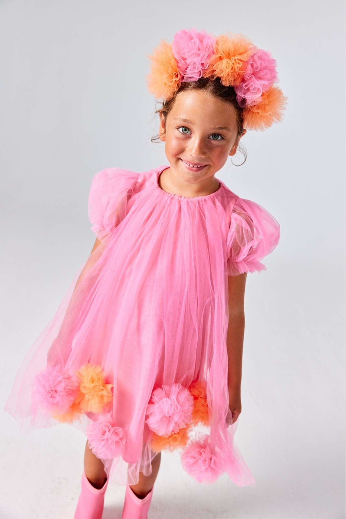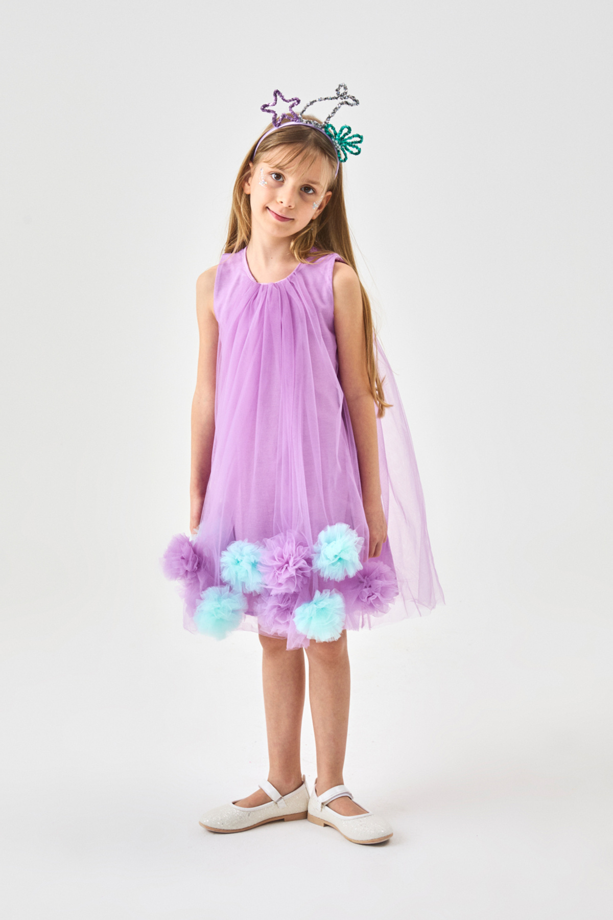 Fuşya Kısa Kollu Eteği Ponponlu Kız Çocuk Elbise - Lavonne Fuşya Kısa Kollu Eteği Ponponlu Kız Çocuk Elbise - Lavonne LM1704 8 Yaş