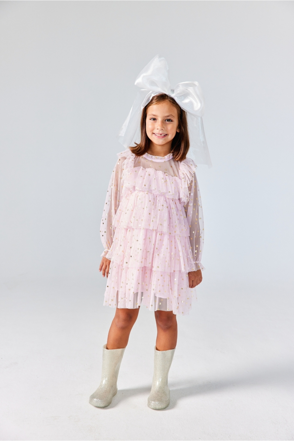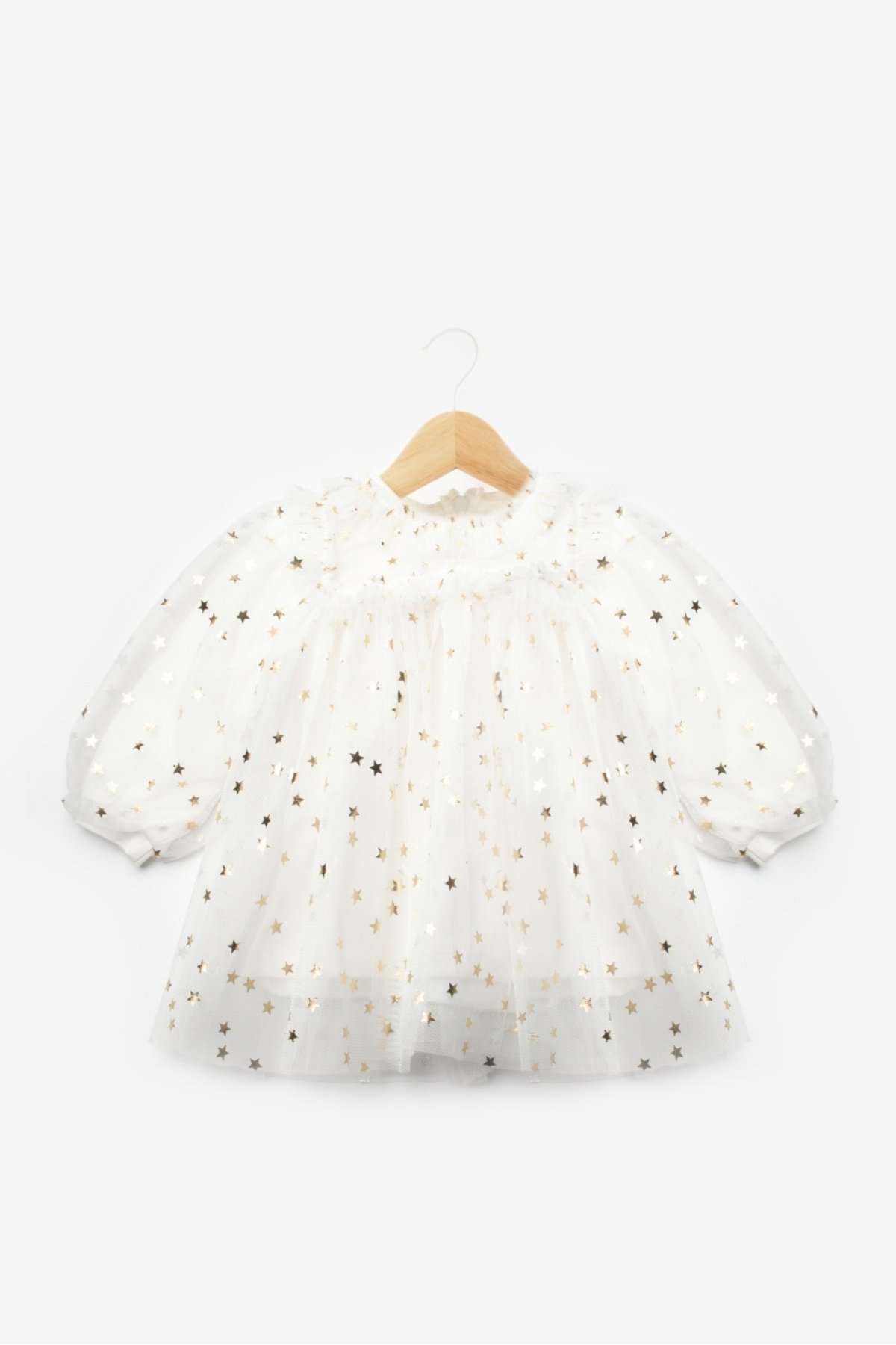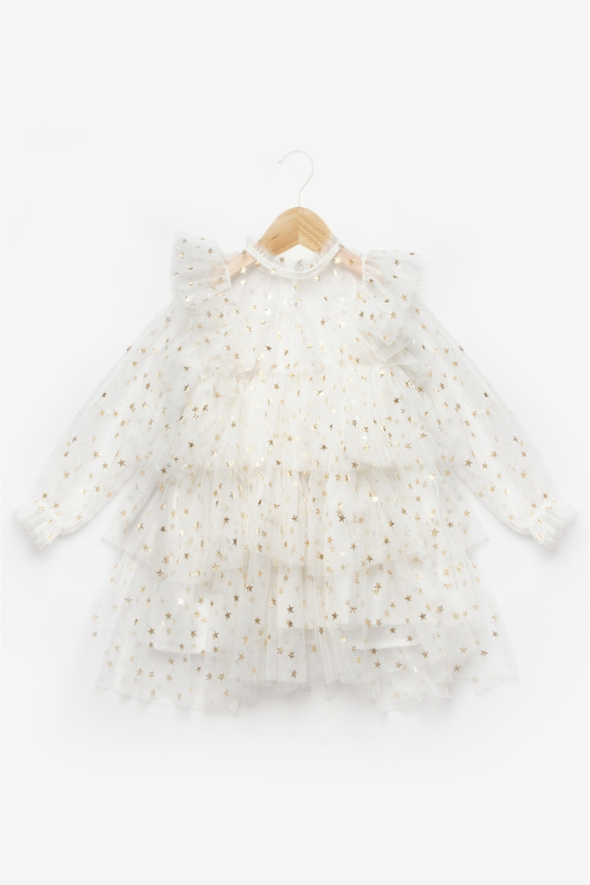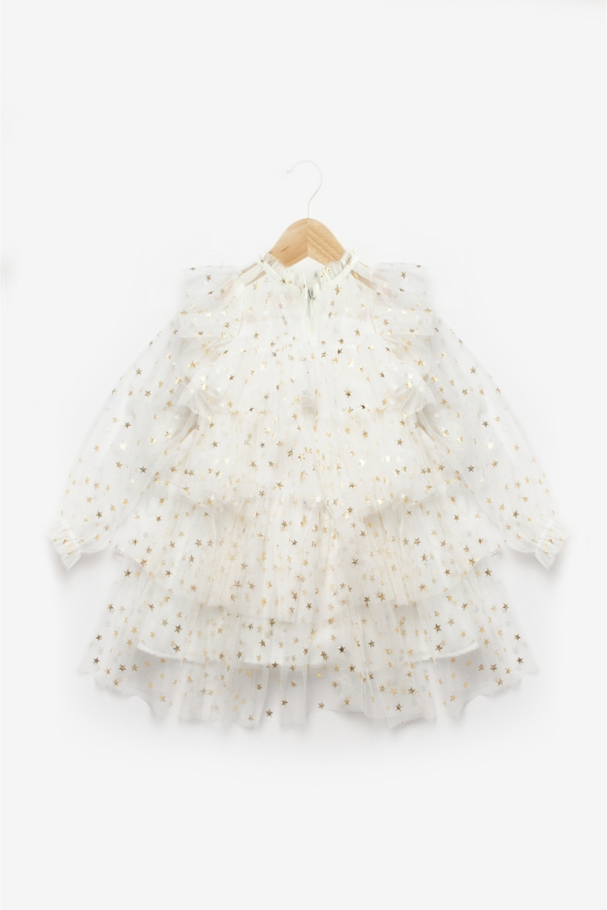 Ekru Yıldız Desenli Katlı Kız Çocuk Elbise - Felicia Ekru Yıldız Desenli Katlı Kız Çocuk Elbise - Felicia LM1721 8 Yaş