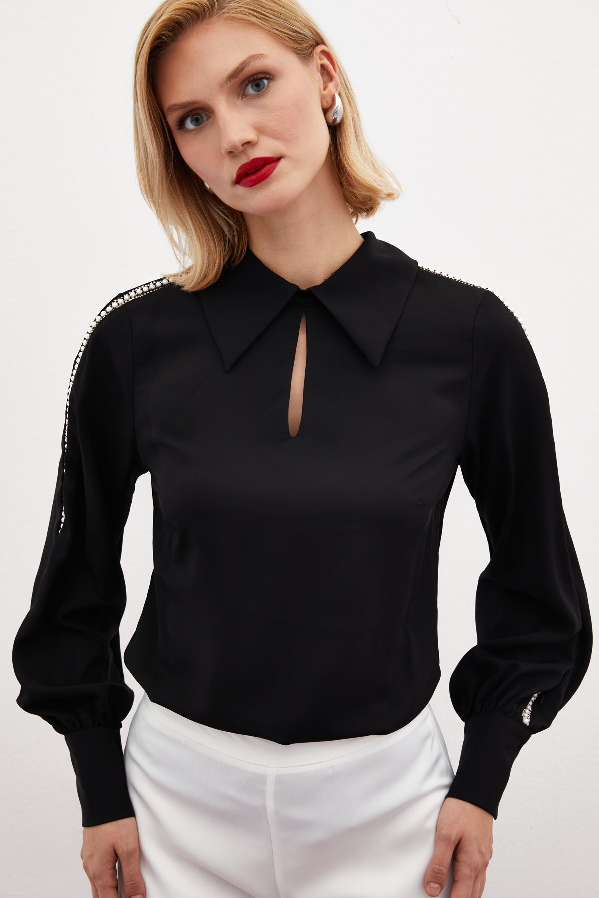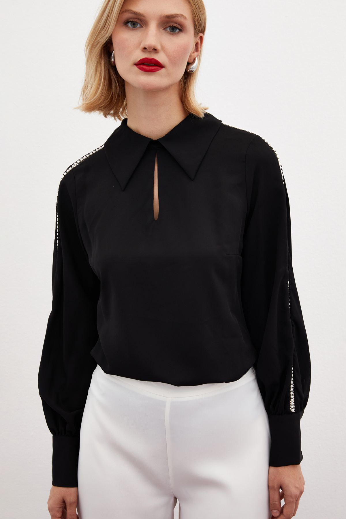 Kolları İnci Detaylı Bluz - SİYAH Kolları İnci Detaylı Bluz - SİYAH STN139KBL1451 42