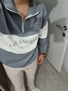 Unisex Duman Gri Los Angeles Baskılı Oversize Parçalı Polo Yaka Fermuarlı Sweatshirt Unisex Duman Gri Los Angeles Baskılı Oversize Parçalı Polo Yaka Fermuarlı Sweatshirt ALTAMİRALOSPARÇALIKPS2 XL