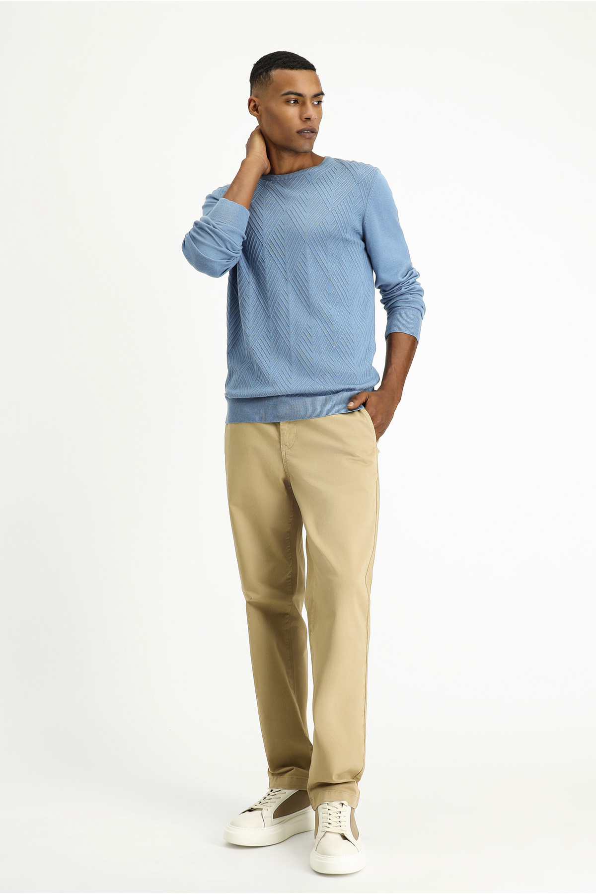 Bisiklet Yaka Slim Fit Dar Kesim Desenli Pamuklu Triko Kazak Bisiklet Yaka Slim Fit Dar Kesim Desenli Pamuklu Triko Kazak KK25DGH0DS003 7XL