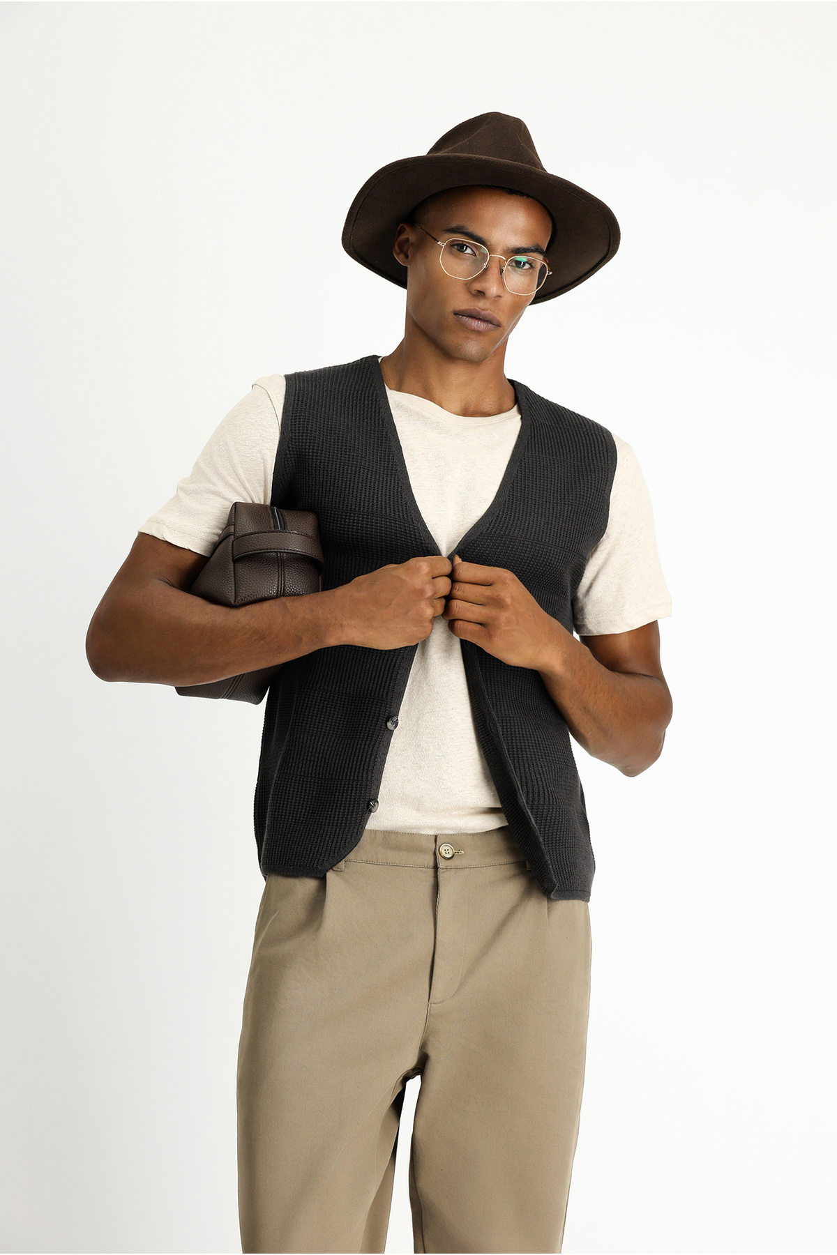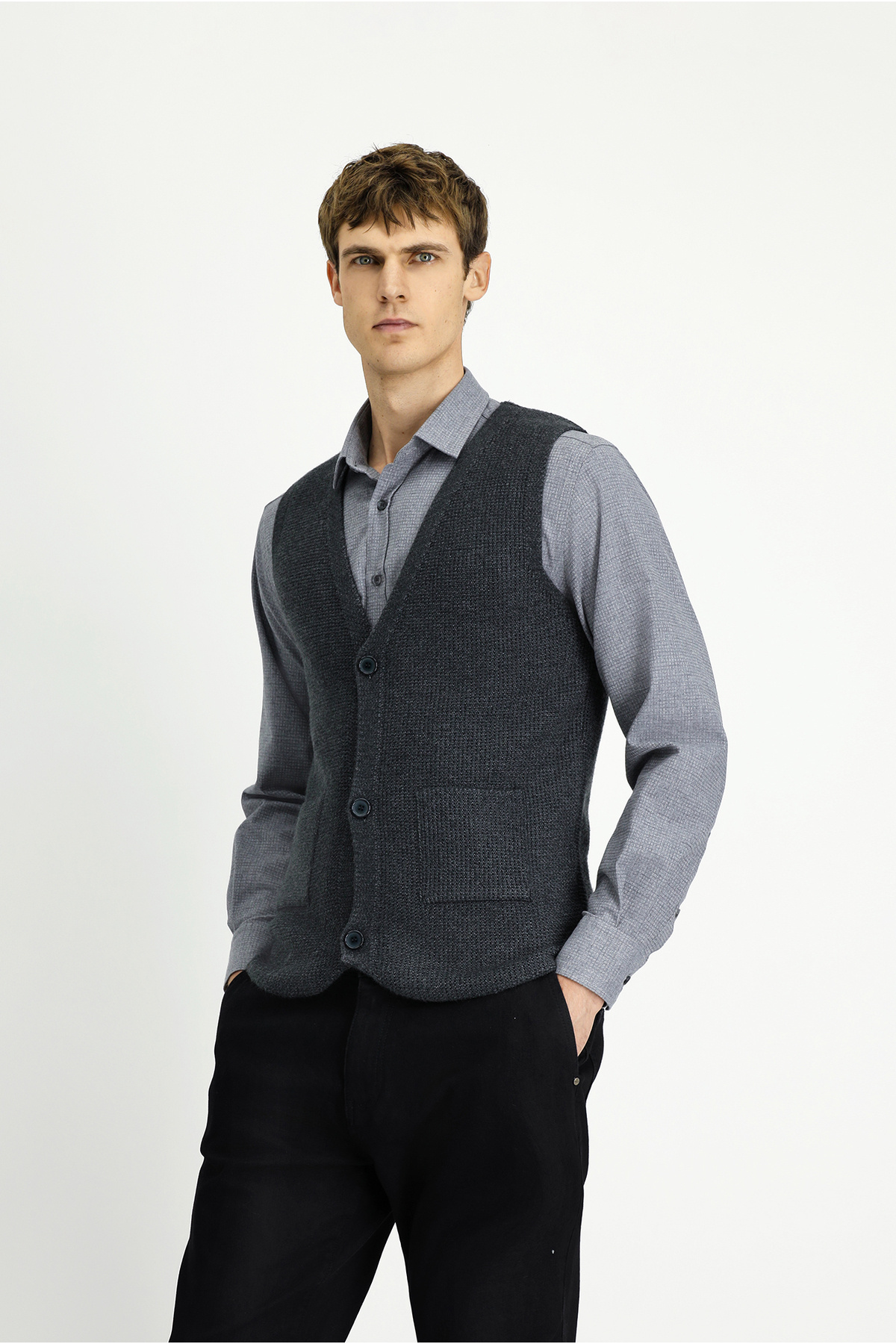 V Yaka Desenli Pamuklu Triko Yelek V Yaka Desenli Pamuklu Triko Yelek KK25DKH0DS002 7XL