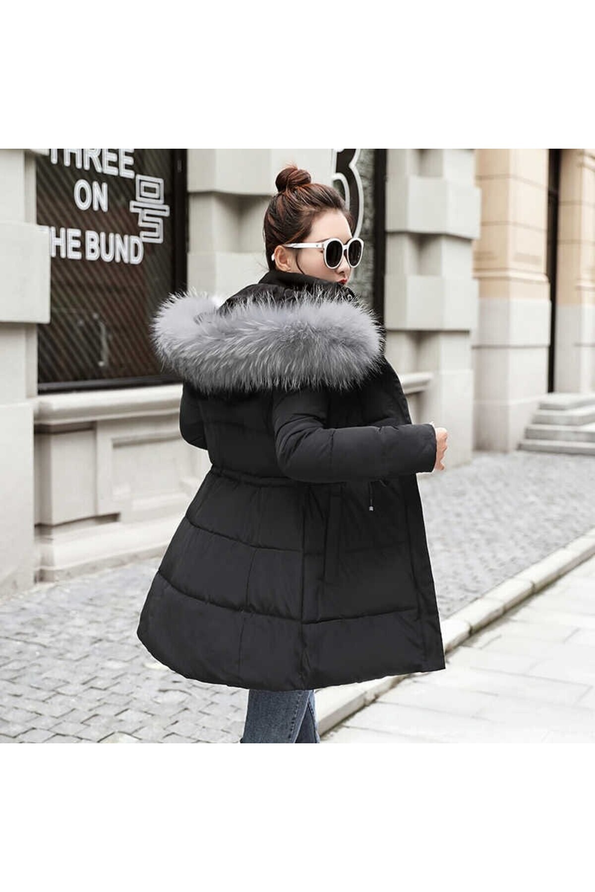 Kışlık Yaka Kürklü Uzun Kadın Şişme Mont Kışlık Yaka Kürklü Uzun Kadın Şişme Mont TDSbt122siyah11 2XL