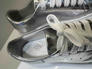 Kadın Gümüş Hakiki Deri Spor Sneaker Bağcıklı Günlük Kullanım Yumuşak Hafif & Konforlu Taban Kadın Gümüş Hakiki Deri Spor Sneaker Bağcıklı Günlük Kullanım Yumuşak Hafif & Konforlu Taban 210 40