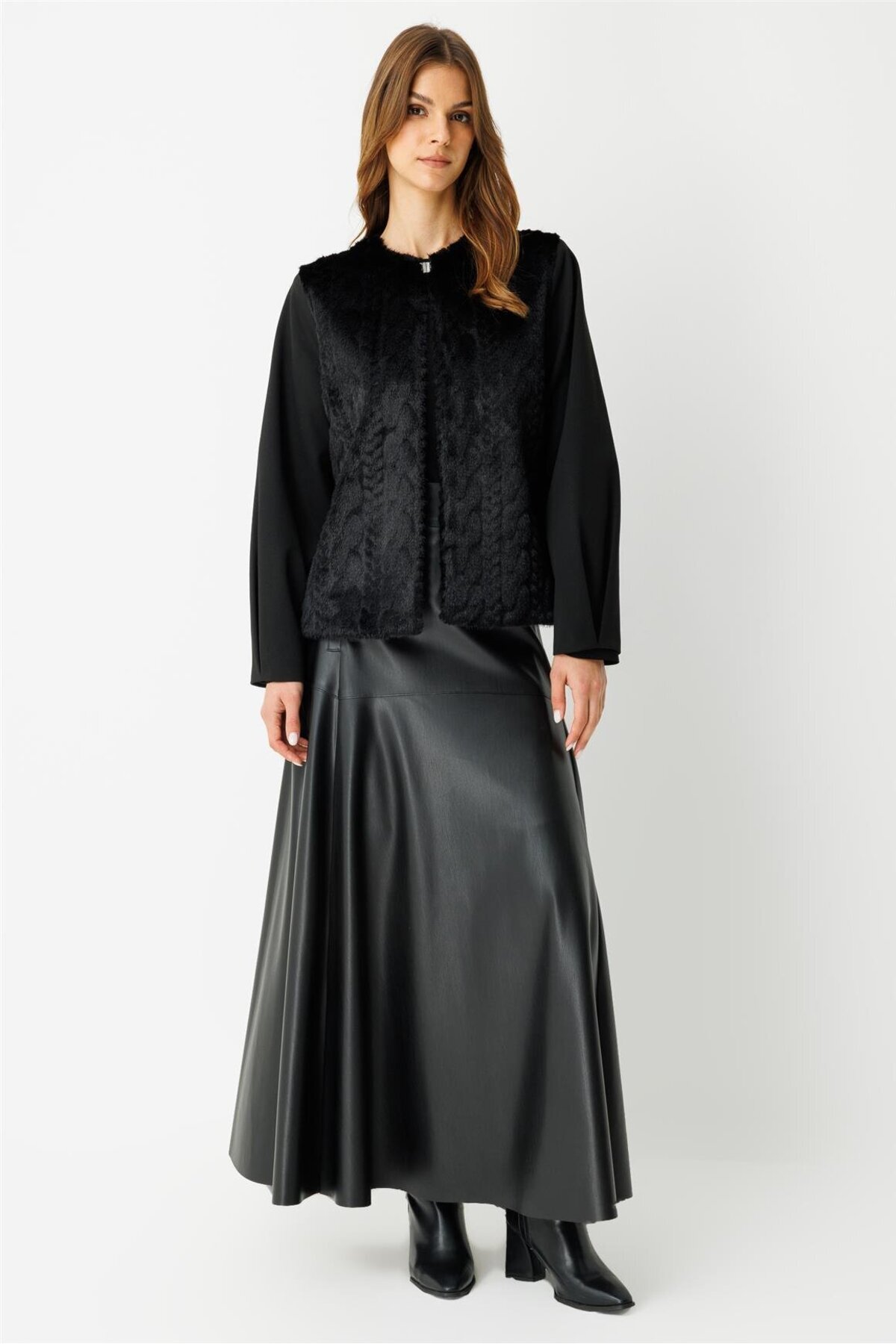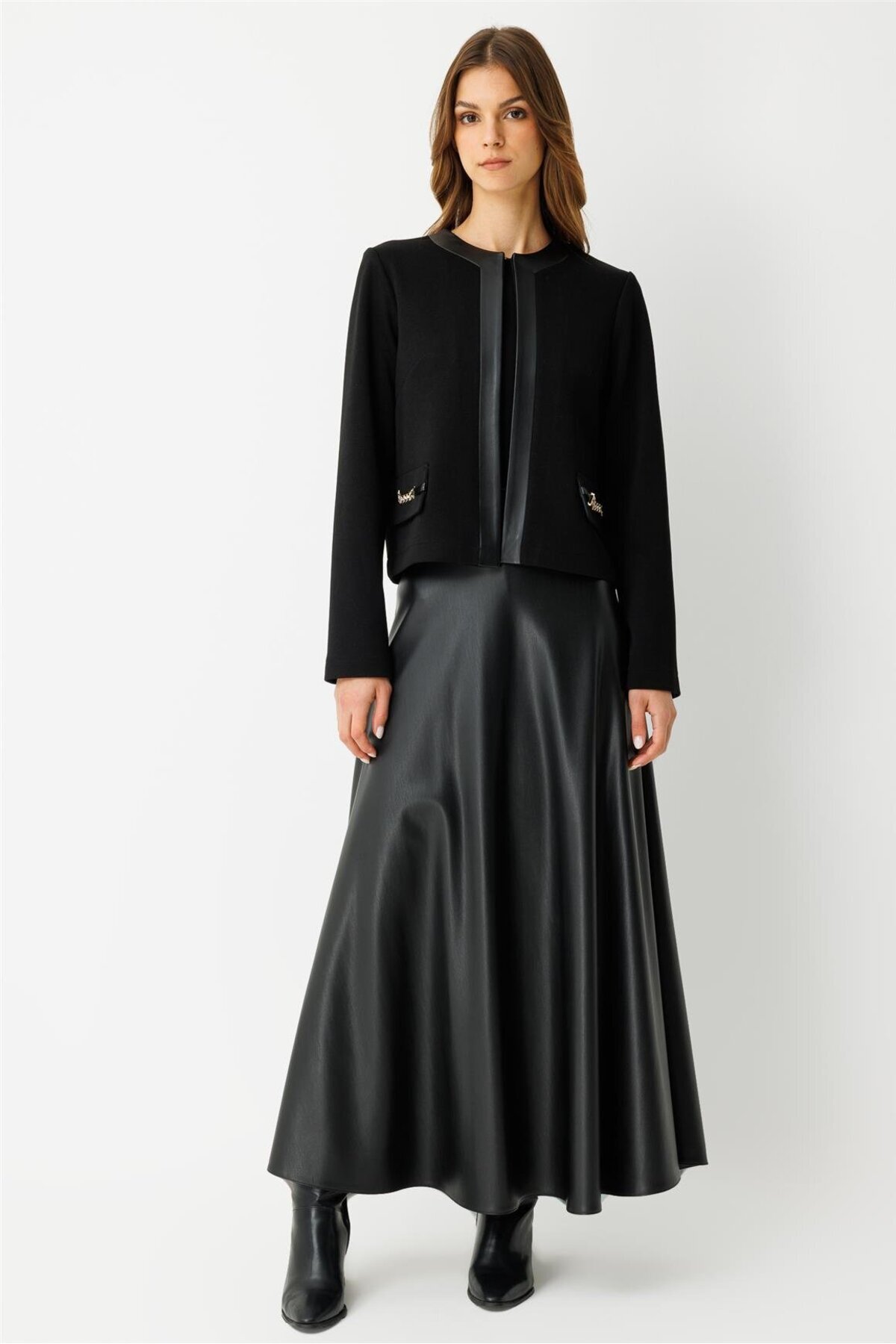 Deri Süeterli Gömlekli Etekli Takım Siyah Deri Süeterli Gömlekli Etekli Takım Siyah 2527832200 46