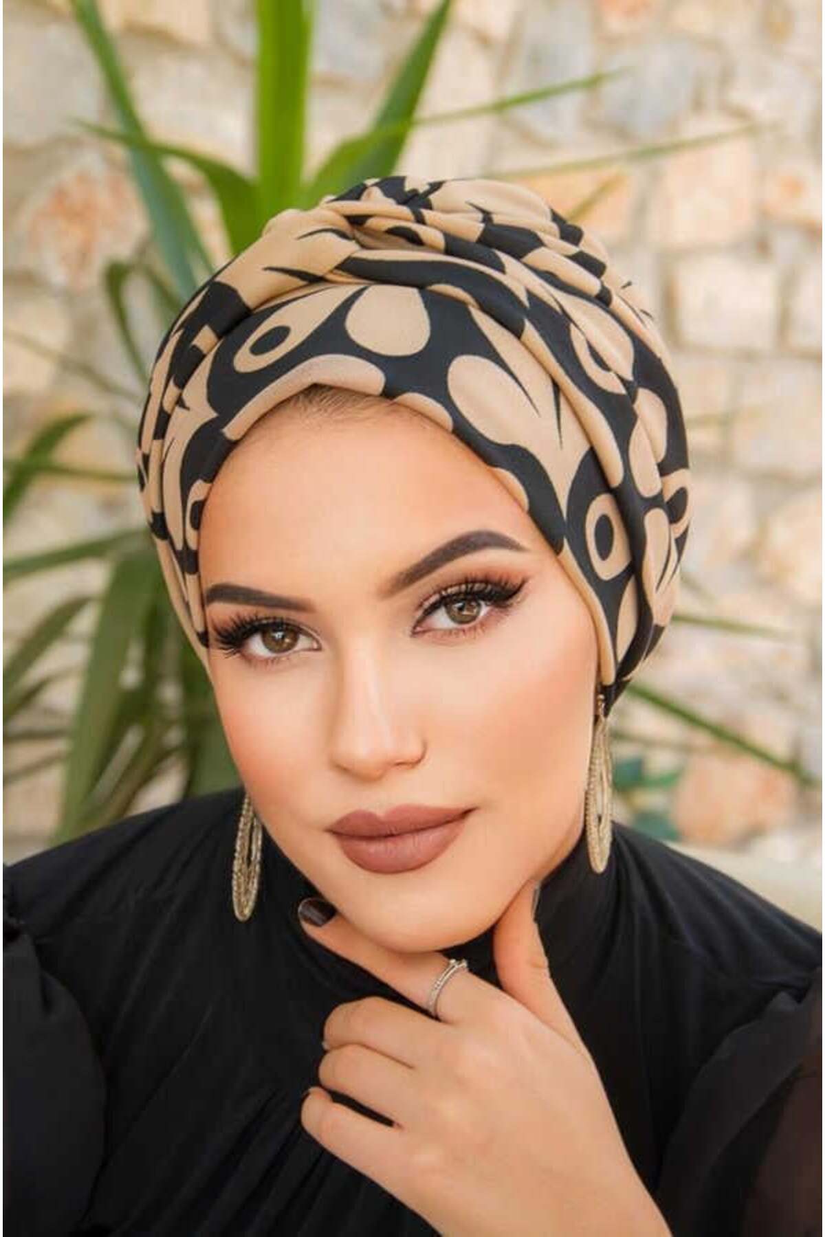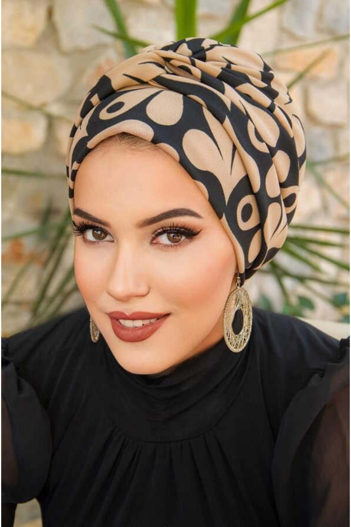 Siyah Bej Yaprak Desen Burgu Detaylı Bone Siyah Bej Yaprak Desen Burgu Detaylı Bone 40309 Standart