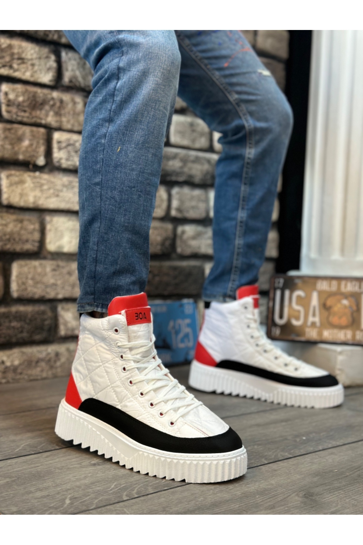 Tugerdi Beyaz Paraşüt Kumaş Kırmızı Detaylı Yüksek Taban Yarım Bilek Spor Bot TGE2301002 Tugerdi Beyaz Paraşüt Kumaş Kırmızı Detaylı Yüksek Taban Yarım Bilek Spor Bot TGE2301002 44