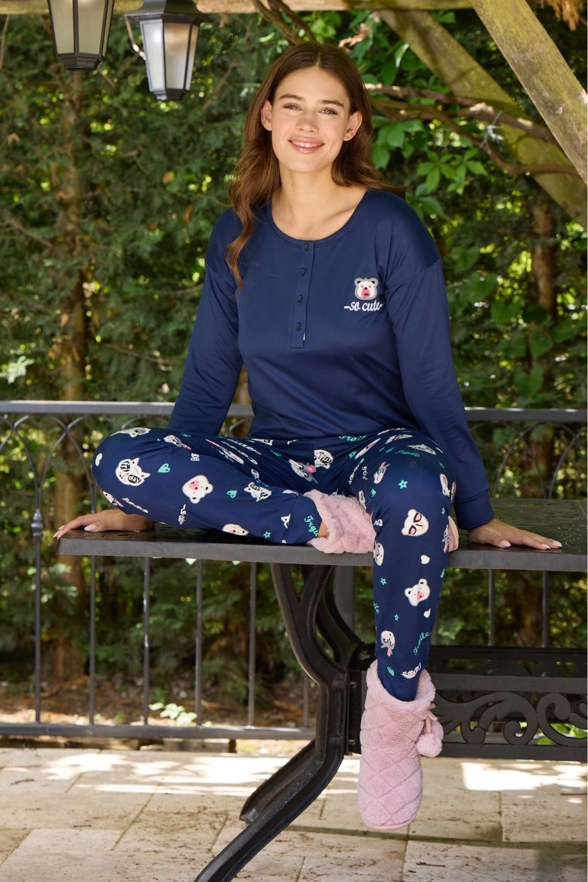 Düğmeli Yaka Uzun Kol Lacivert Pijama Takımı - 8700 Düğmeli Yaka Uzun Kol Lacivert Pijama Takımı - 8700 PIJ8700 2XL