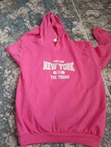 Kız Çocuk Pembe Kapüşonlu ''Beyaz New York'' Baskılı Sweatshirt Kız Çocuk Pembe Kapüşonlu ''Beyaz New York'' Baskılı Sweatshirt pembekapbnewyork