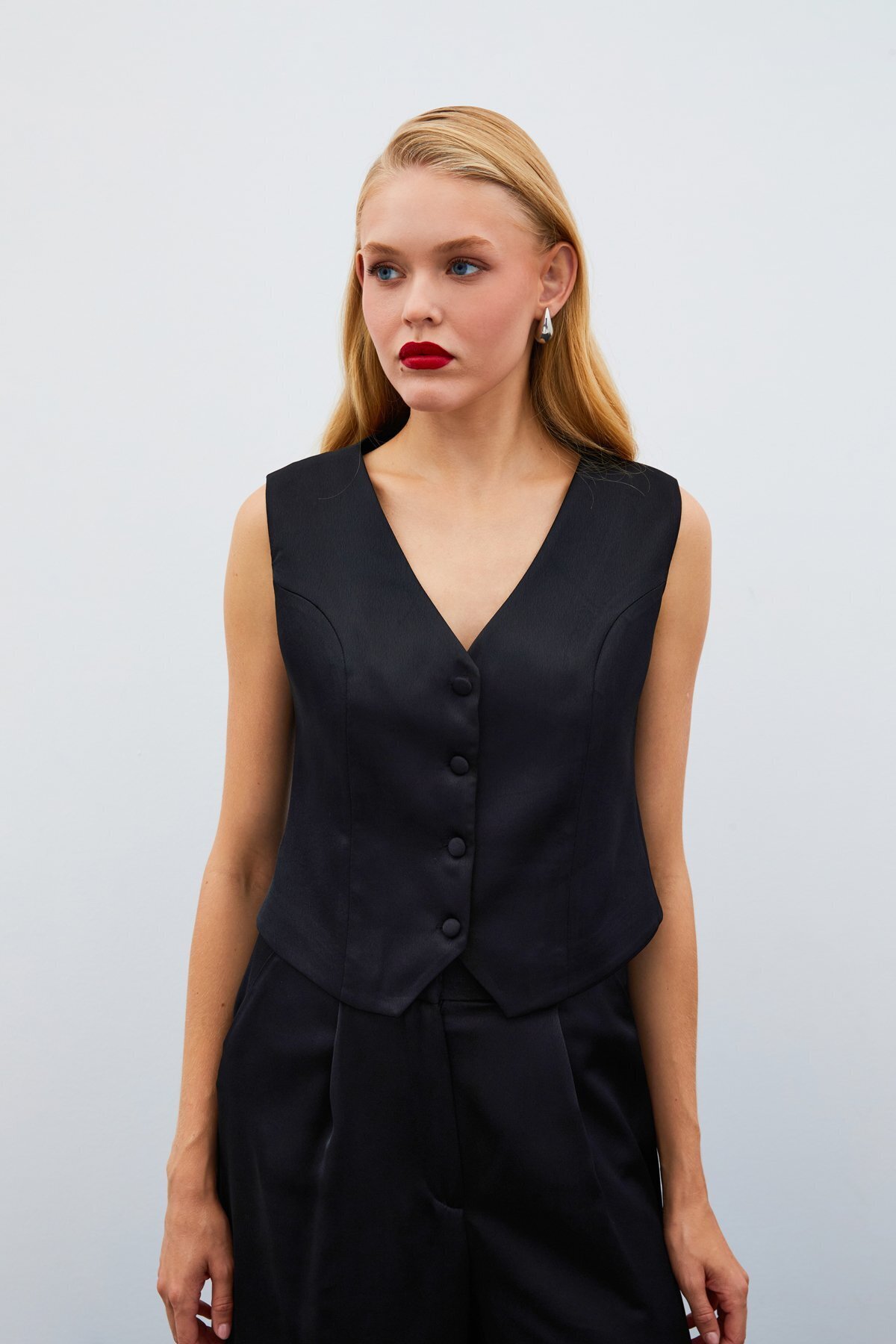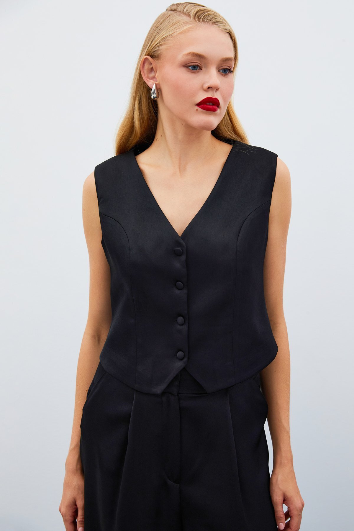 Krep Saten Yelek - SİYAH Krep Saten Yelek - SİYAH STN139KYE1511 42