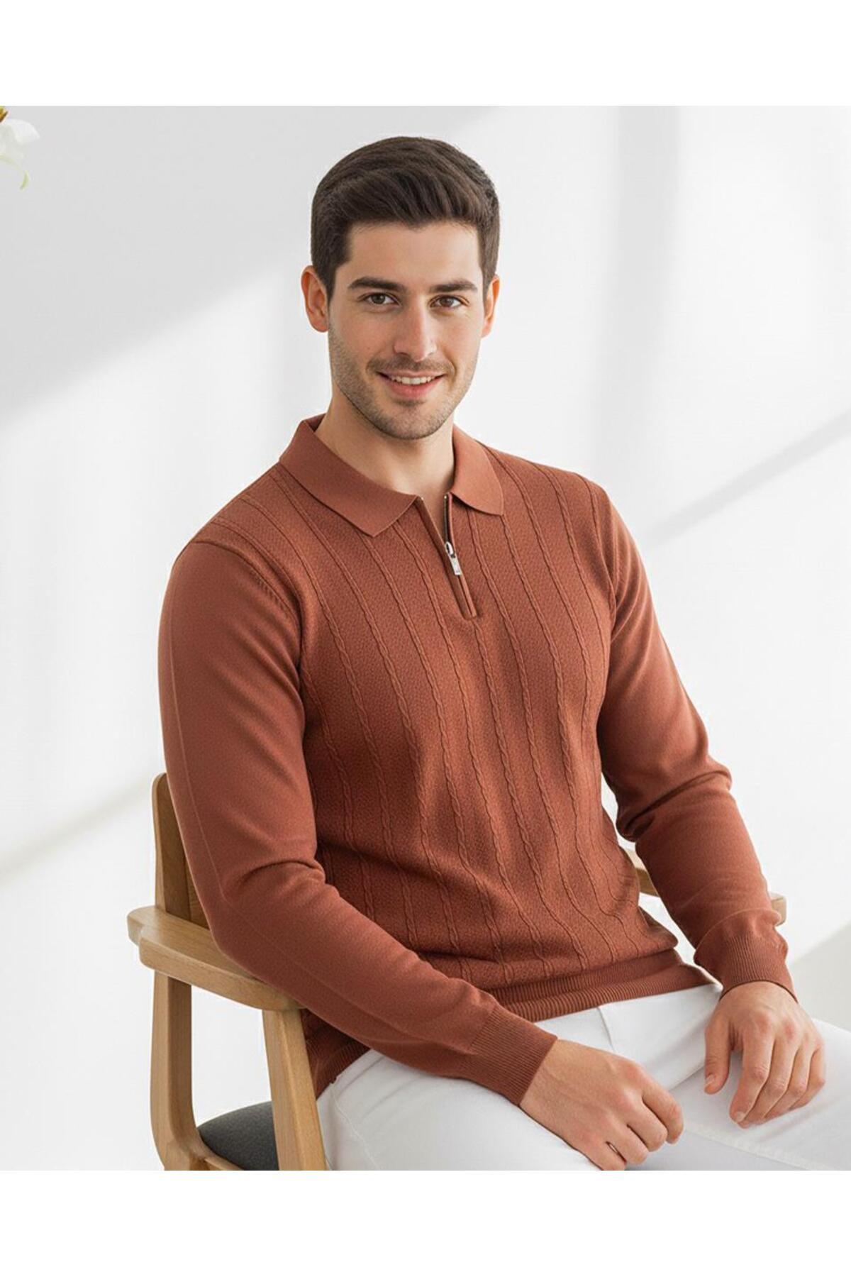 Kahverengi Petek Dokulu Fitilli Polo Yaka Triko Kazak- 2445 Kahverengi Petek Dokulu Fitilli Polo Yaka Triko Kazak- 2445 MRN2023S000236-A 2XL