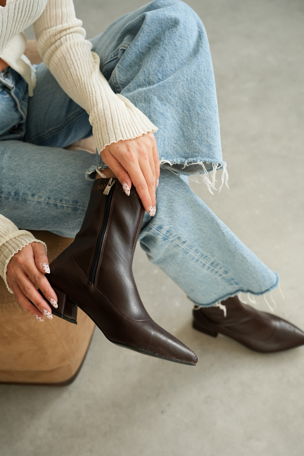 Sara Kahve Streç Arkadan Fermuarlı Kadın Topuklu Bot Sara Kahve Streç Arkadan Fermuarlı Kadın Topuklu Bot 42