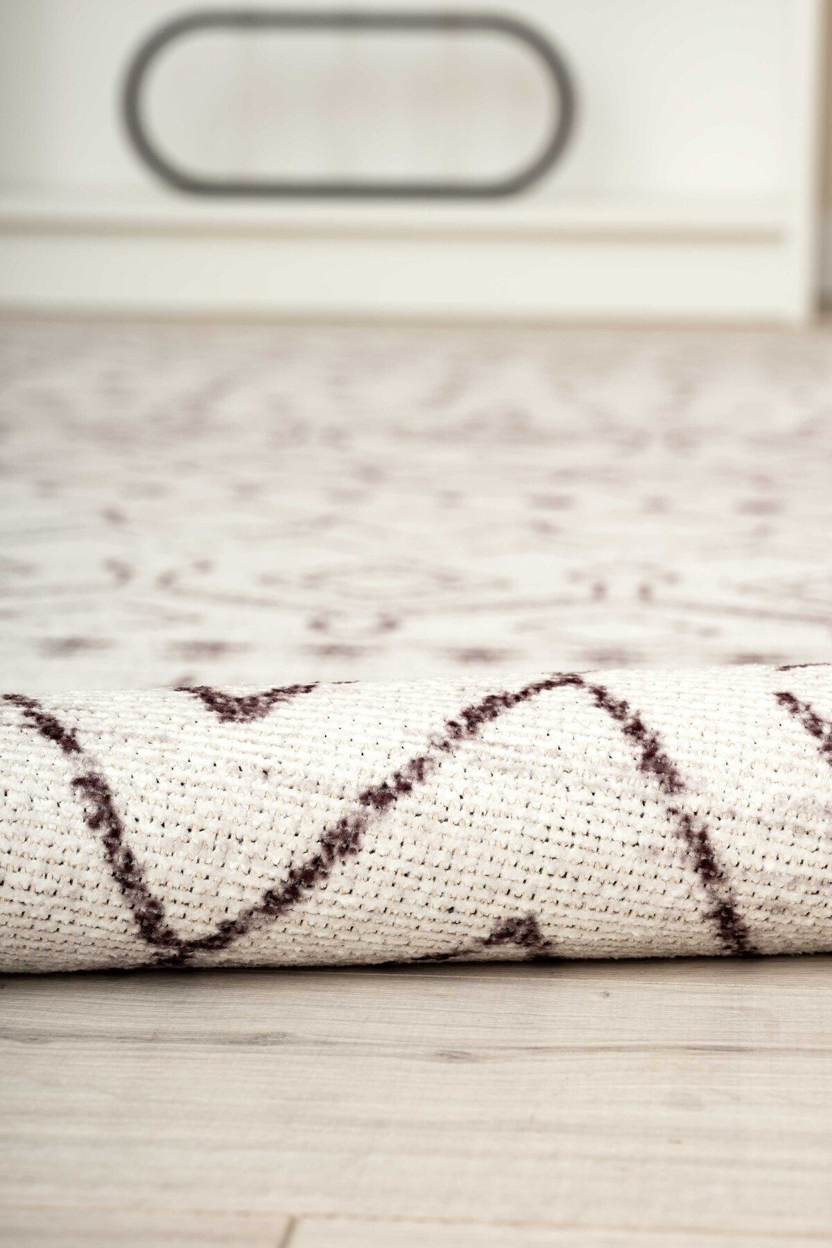 İskandinav Desenli Yıkanabilir Kaymaz Taban Beyaz Kahverengi Şönil Salon Halısı 4097 İskandinav Desenli Yıkanabilir Kaymaz Taban Beyaz Kahverengi Şönil Salon Halısı 4097 160 x 230