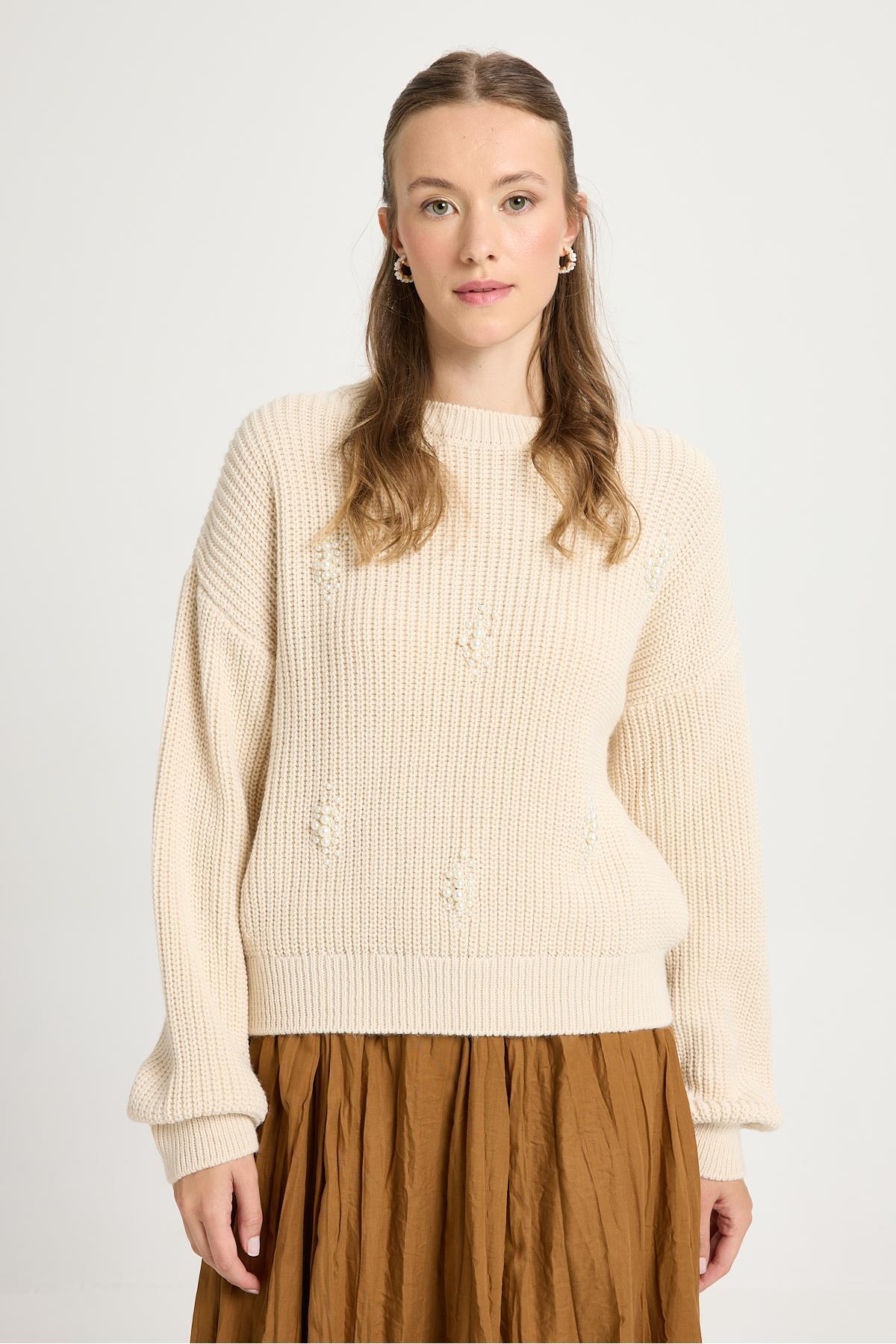 İnce Triko Taşlı Kazak İnce Triko Taşlı Kazak 77005675 L