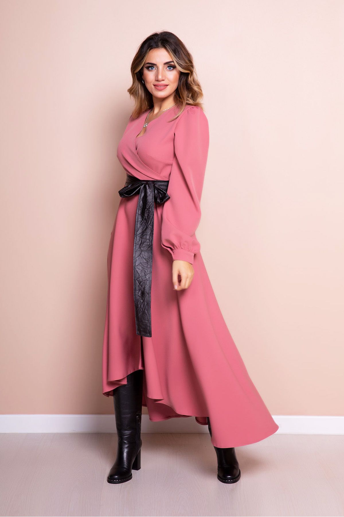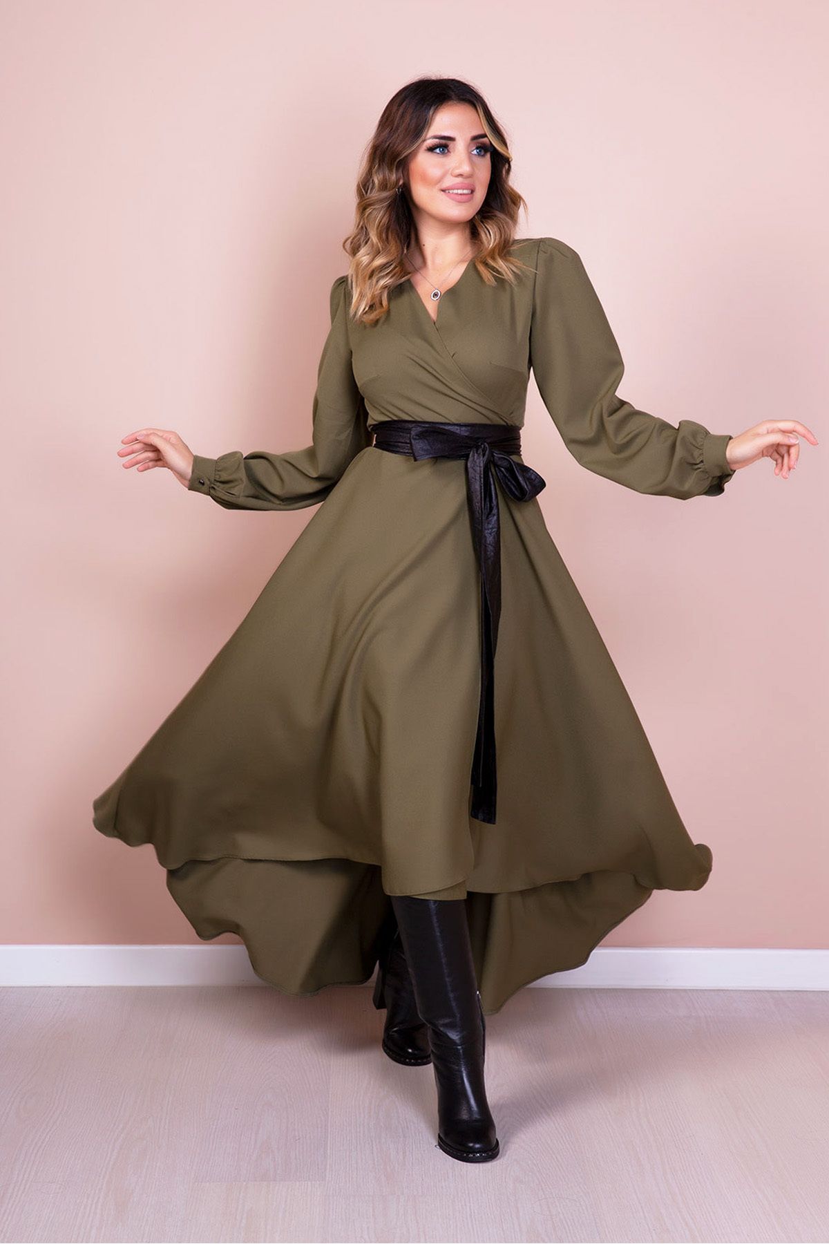 Kadın Tarçın Siyah Deri Kemerli Uzun Kol Asimetrik Kesim Midi Boy Elbise Kadın Tarçın Siyah Deri Kemerli Uzun Kol Asimetrik Kesim Midi Boy Elbise BM-0210-SYDK-MID 54
