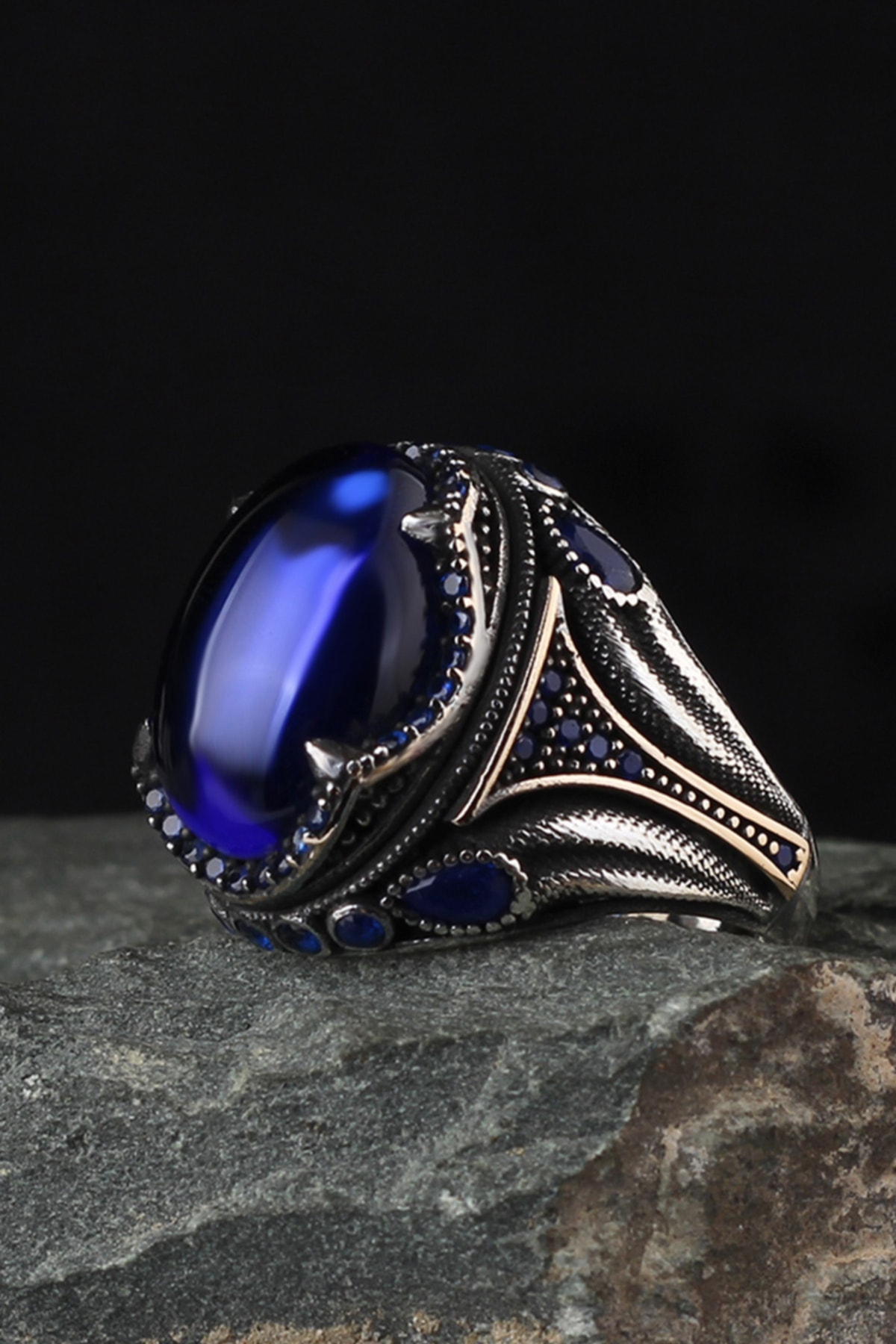 Mavi Mineli Mikro Taşlı Oval Parlak Safir Cam Taşlı 925 Ayar Erkek Gümüş Yüzük Mavi Mineli Mikro Taşlı Oval Parlak Safir Cam Taşlı 925 Ayar Erkek Gümüş Yüzük SN8005