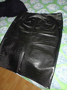 Kroko Desen Yırtmaçlı Kadın Deri Etek Siyah Kroko Desen Yırtmaçlı Kadın Deri Etek Siyah YLN553 2XL