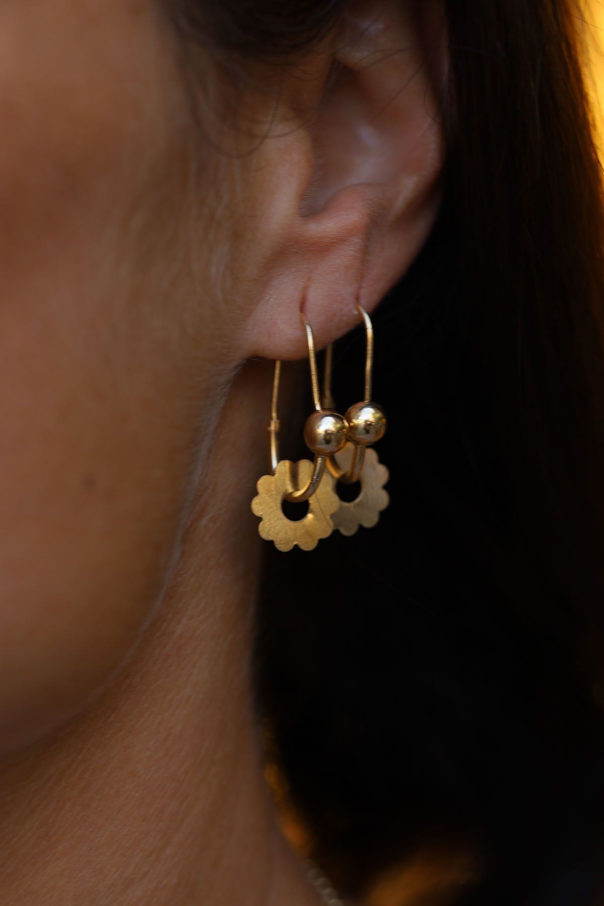 14 Ayar Altın Çiçek Desenli Pırpır Küpe 14 Ayar Altın Çiçek Desenli Pırpır Küpe KP23280 تک سایز
