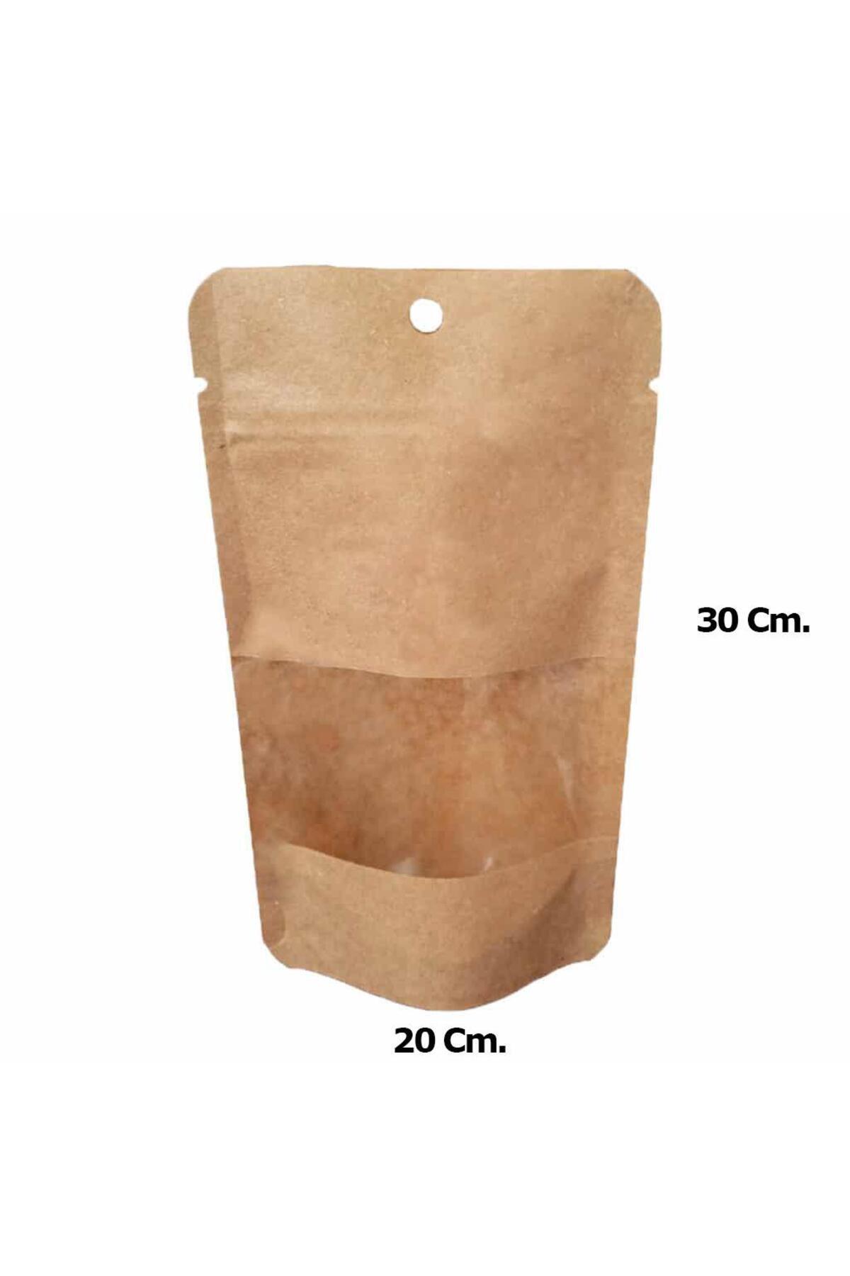Pencereli Kraft Delikli Kilitli Kese Kağıdı - Orta Boy - 20x30 Cm. -1000 Gr. - 60 Adet