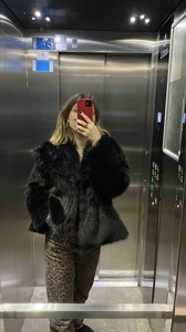 Siyah Yumuşak Dokulu Kadın Kürk Mont MG2204 Siyah Yumuşak Dokulu Kadın Kürk Mont MG2204 XL