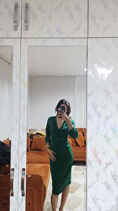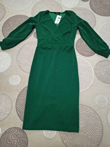 Yeni Sezon Kadın Kruvaze Yaka Uzun Balon Kol Simli Midi Şık Kalem Elbise Yeni Sezon Kadın Kruvaze Yaka Uzun Balon Kol Simli Midi Şık Kalem Elbise VY-b063cec82c0334779336 L