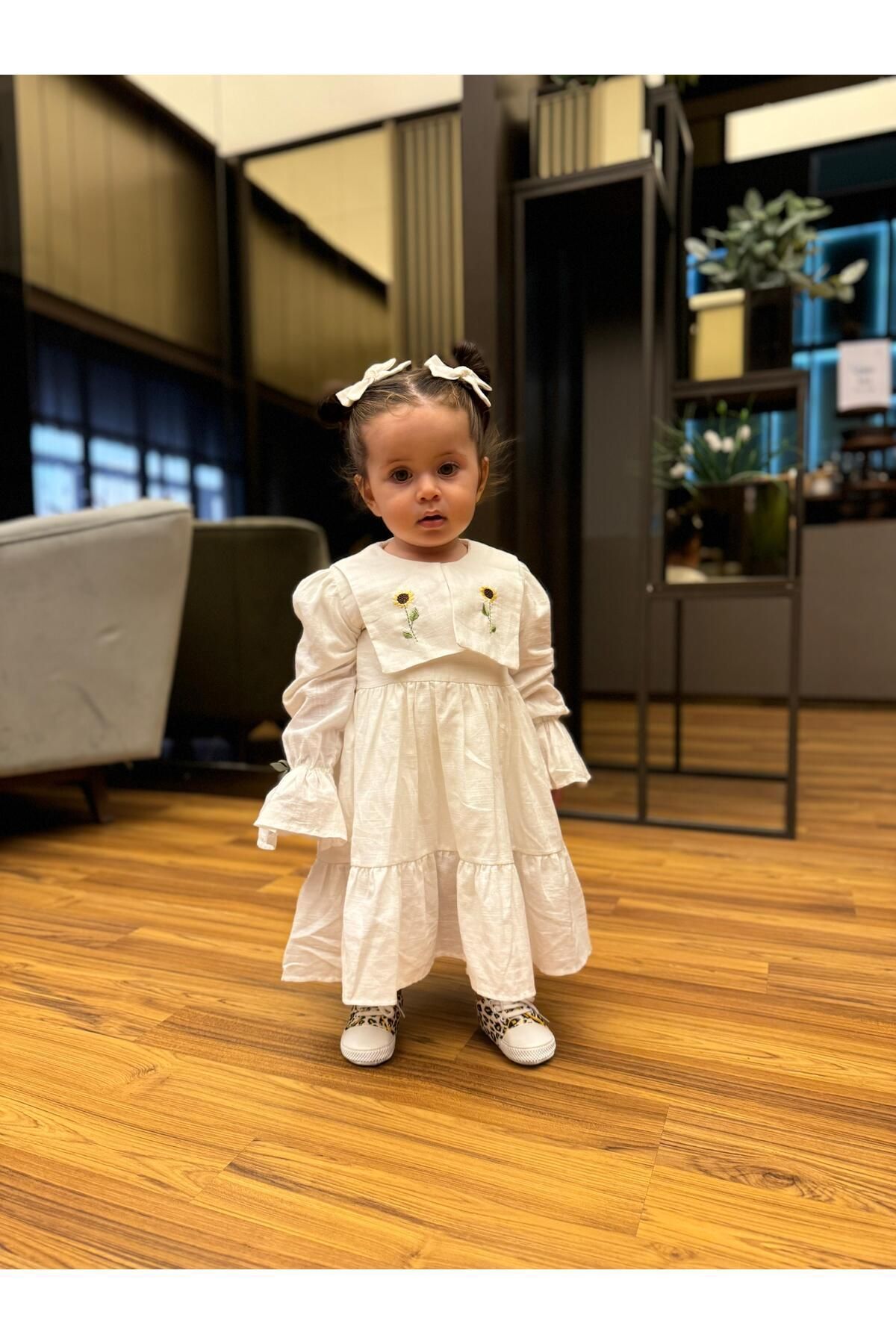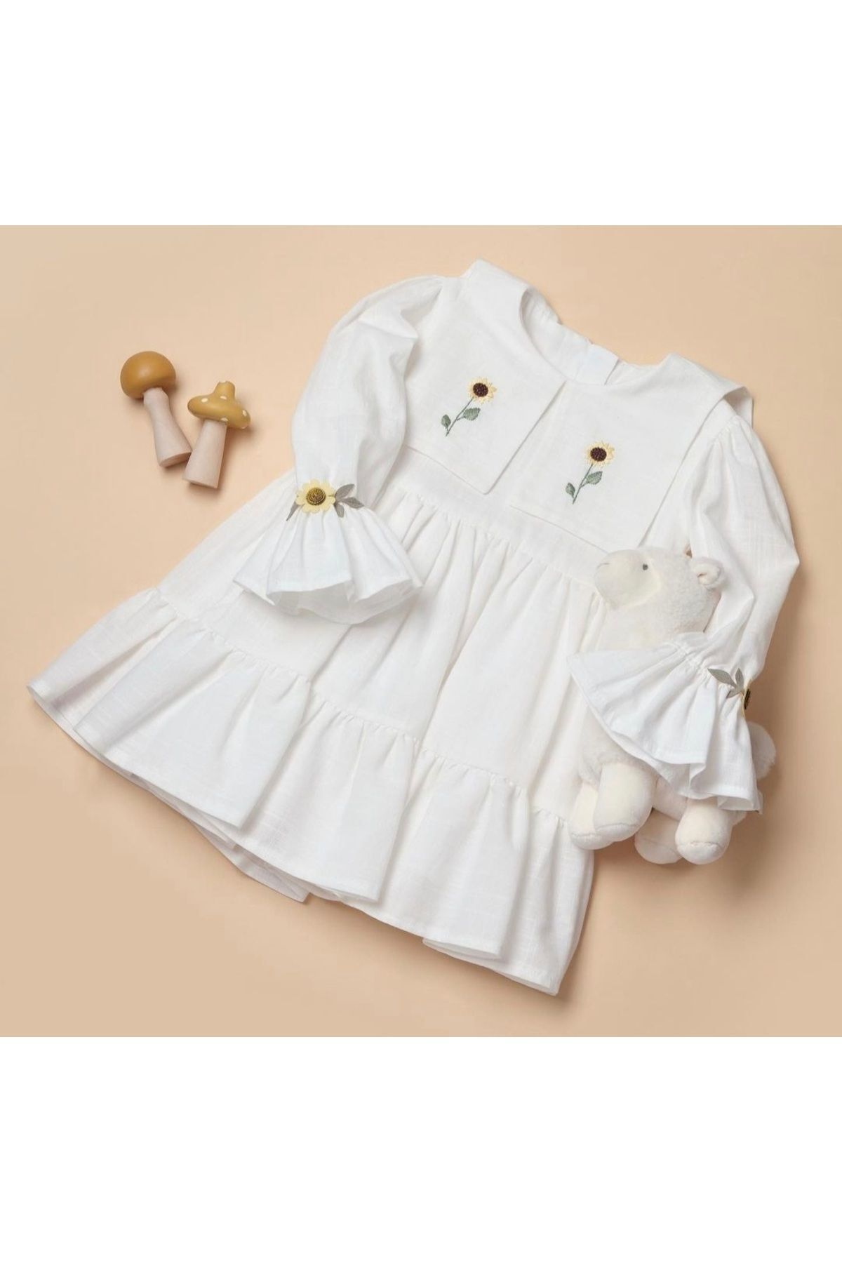 Kız Çocuk Beyaz Çiçek işlemeli Volanlı Uzun Kol Elbise Kız Çocuk Beyaz Çiçek işlemeli Volanlı Uzun Kol Elbise günebakann1 6-7 Yaş