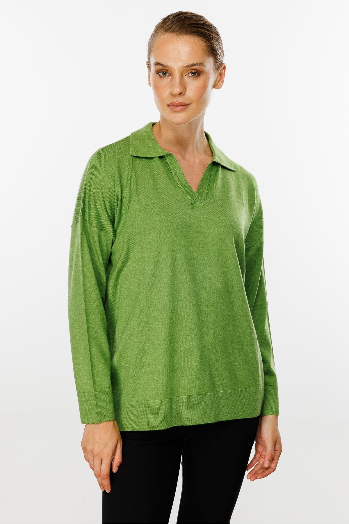 Mutlu Ertan Kadın Gömlek Yaka Triko Bluz Yesil 20076 Mutlu Ertan Kadın Gömlek Yaka Triko Bluz Yesil 20076 Standart