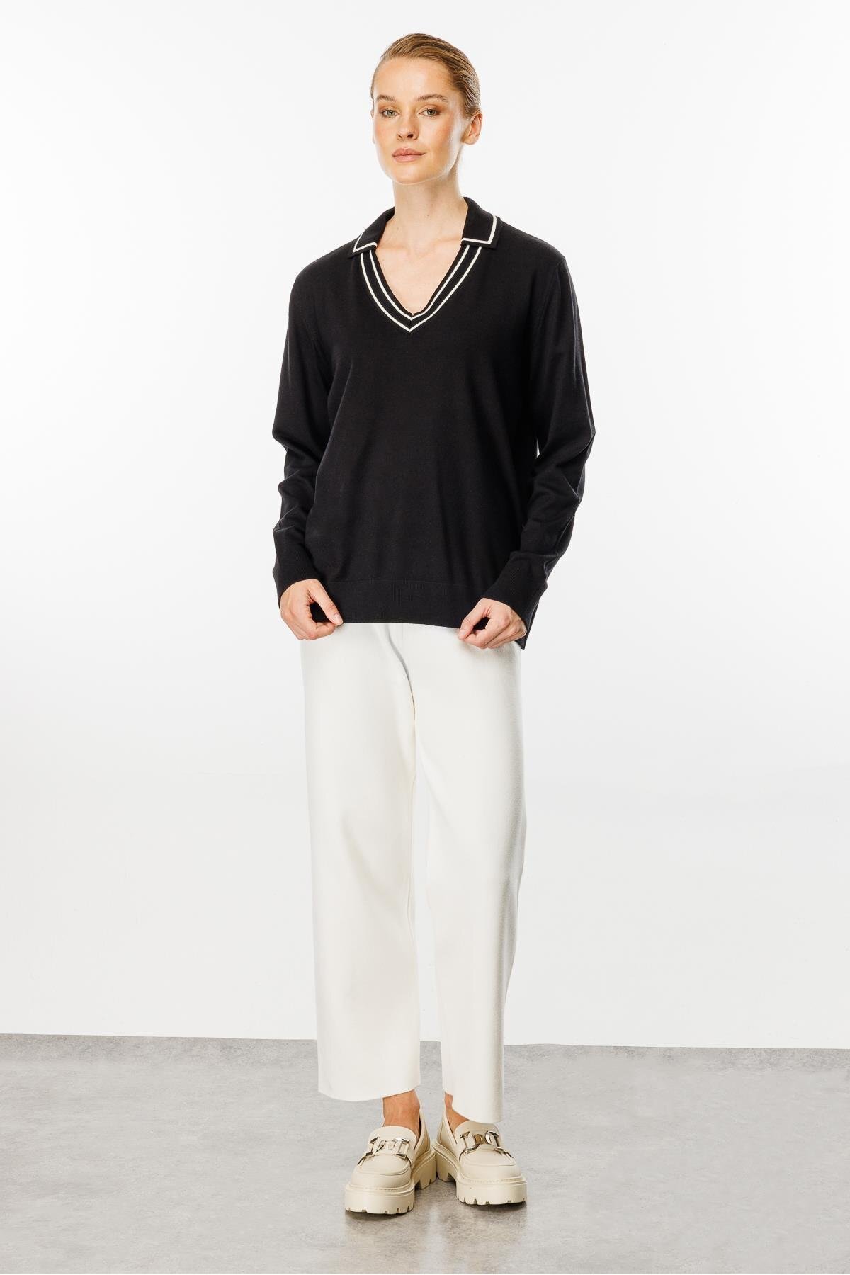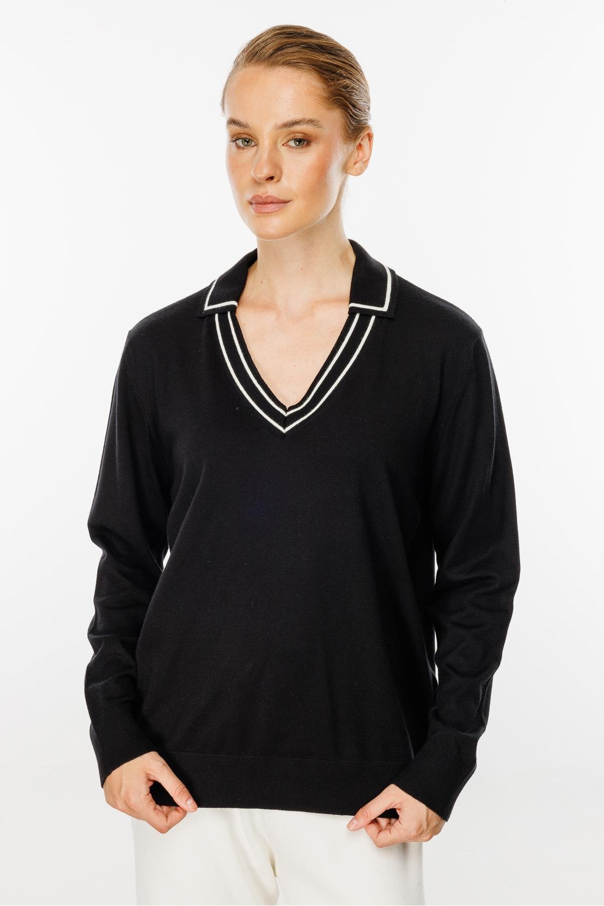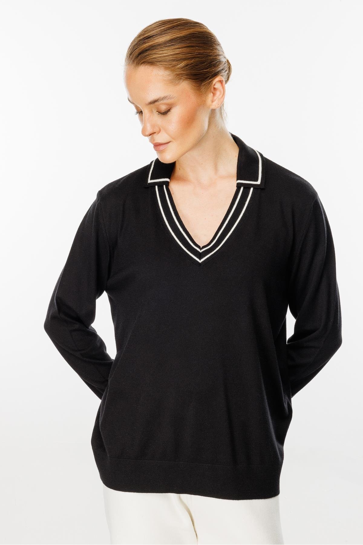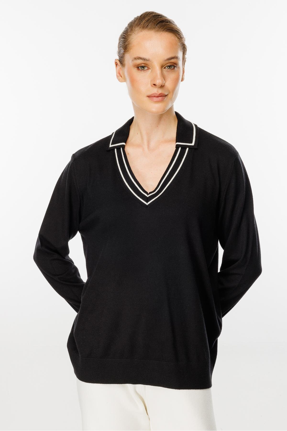 Mutlu Ertan Kadın Gömlek Yaka Triko Bluz Siyah 20131 Mutlu Ertan Kadın Gömlek Yaka Triko Bluz Siyah 20131 XL
