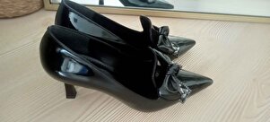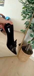 Kadın Siyah Rugan Sivri Burunlu Fiyonk Detaylı İnce Topuklu Ayakkabı Kadın Siyah Rugan Sivri Burunlu Fiyonk Detaylı İnce Topuklu Ayakkabı Z721 42