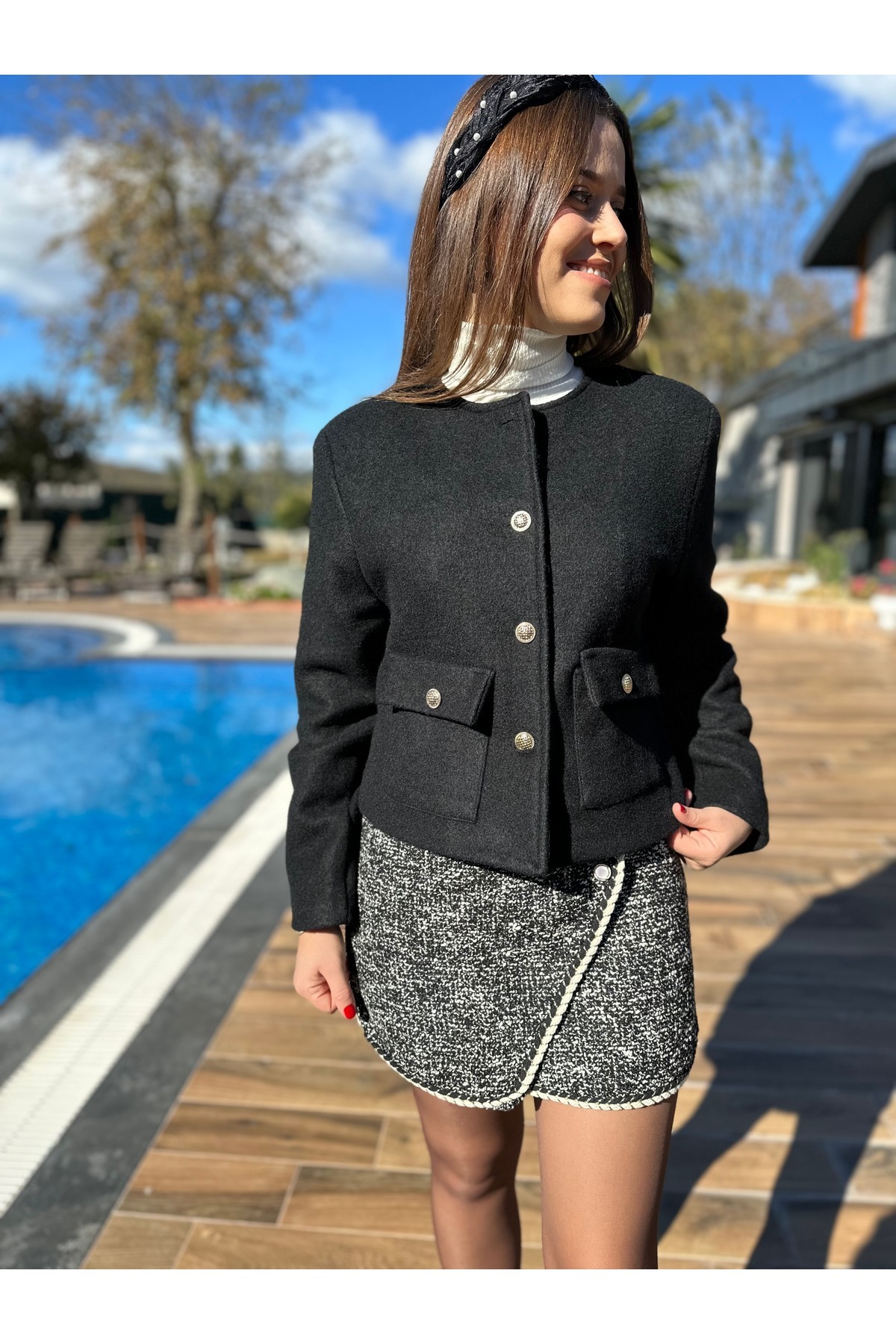 Siyah Kaşe Gold Düğme Detaylı Ceket Siyah Kaşe Gold Düğme Detaylı Ceket 2023121 L