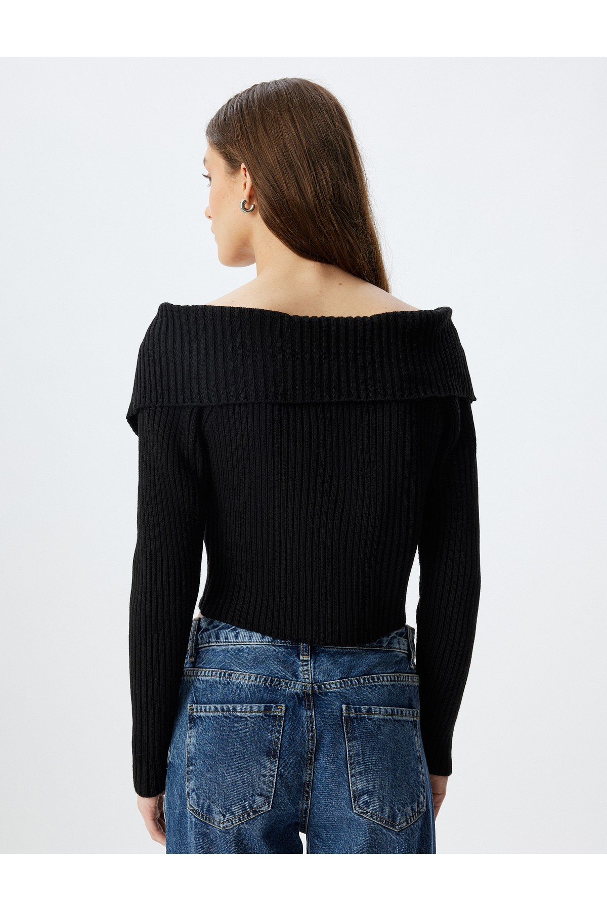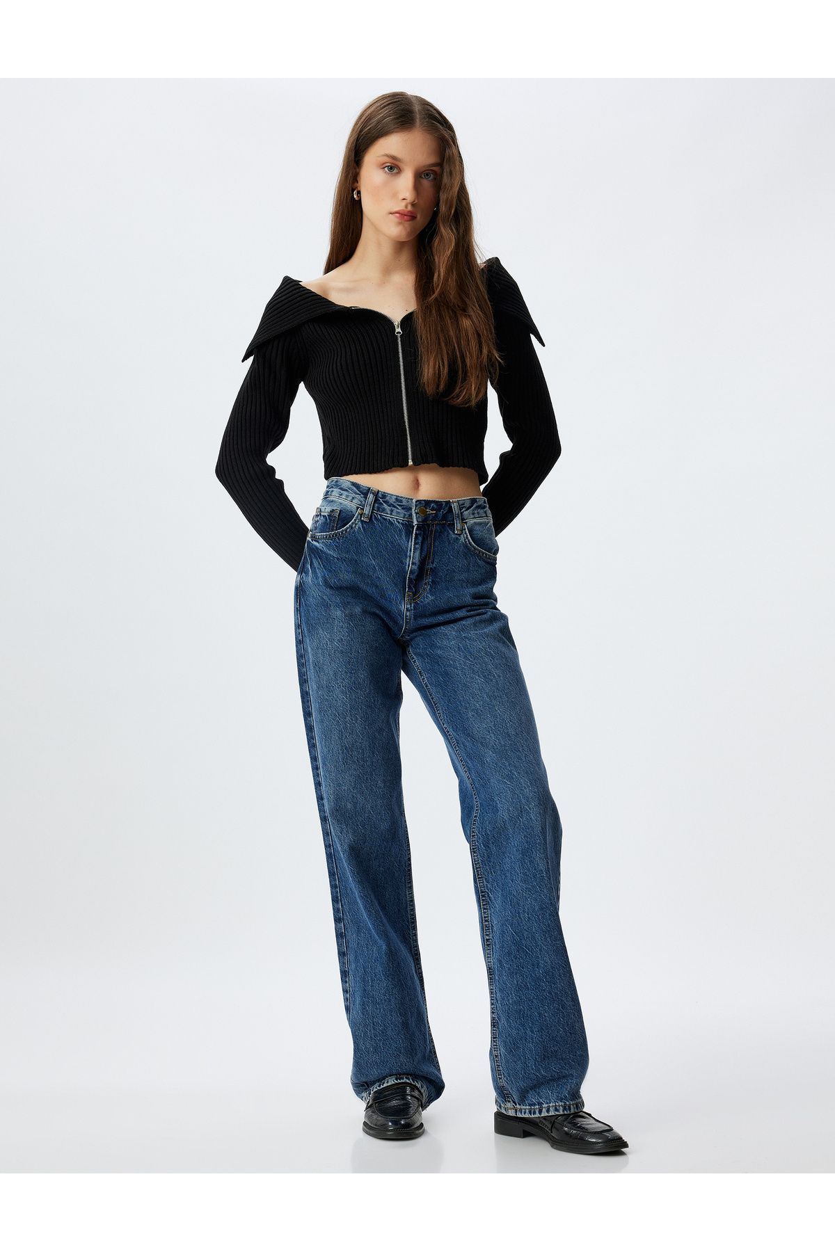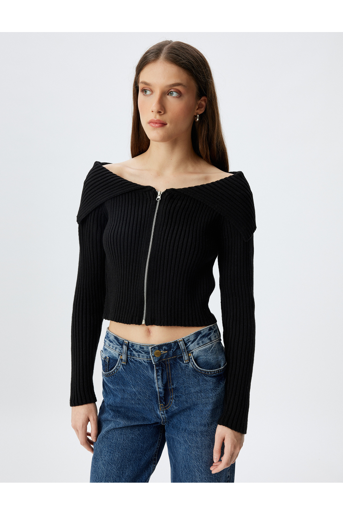 Crop Fermuarlı Triko Hırka Omzu Açık Uzun Kollu Crop Fermuarlı Triko Hırka Omzu Açık Uzun Kollu 5WAK90392HT XL