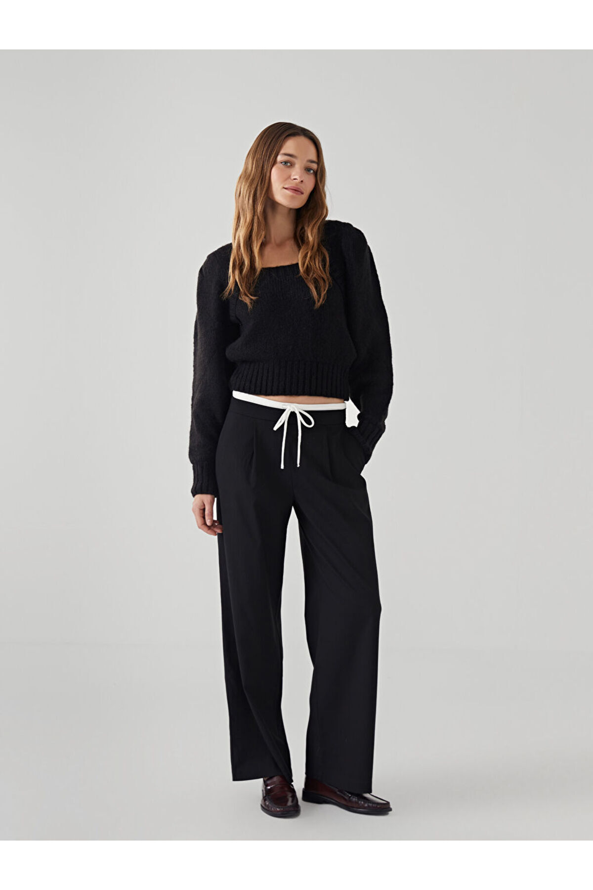 Bol Paça Pantolon Çift Bel Detaylı Cepli Krep Scuba Kumaş Bol Paça Pantolon Çift Bel Detaylı Cepli Krep Scuba Kumaş 5WAK40038EK 2XL