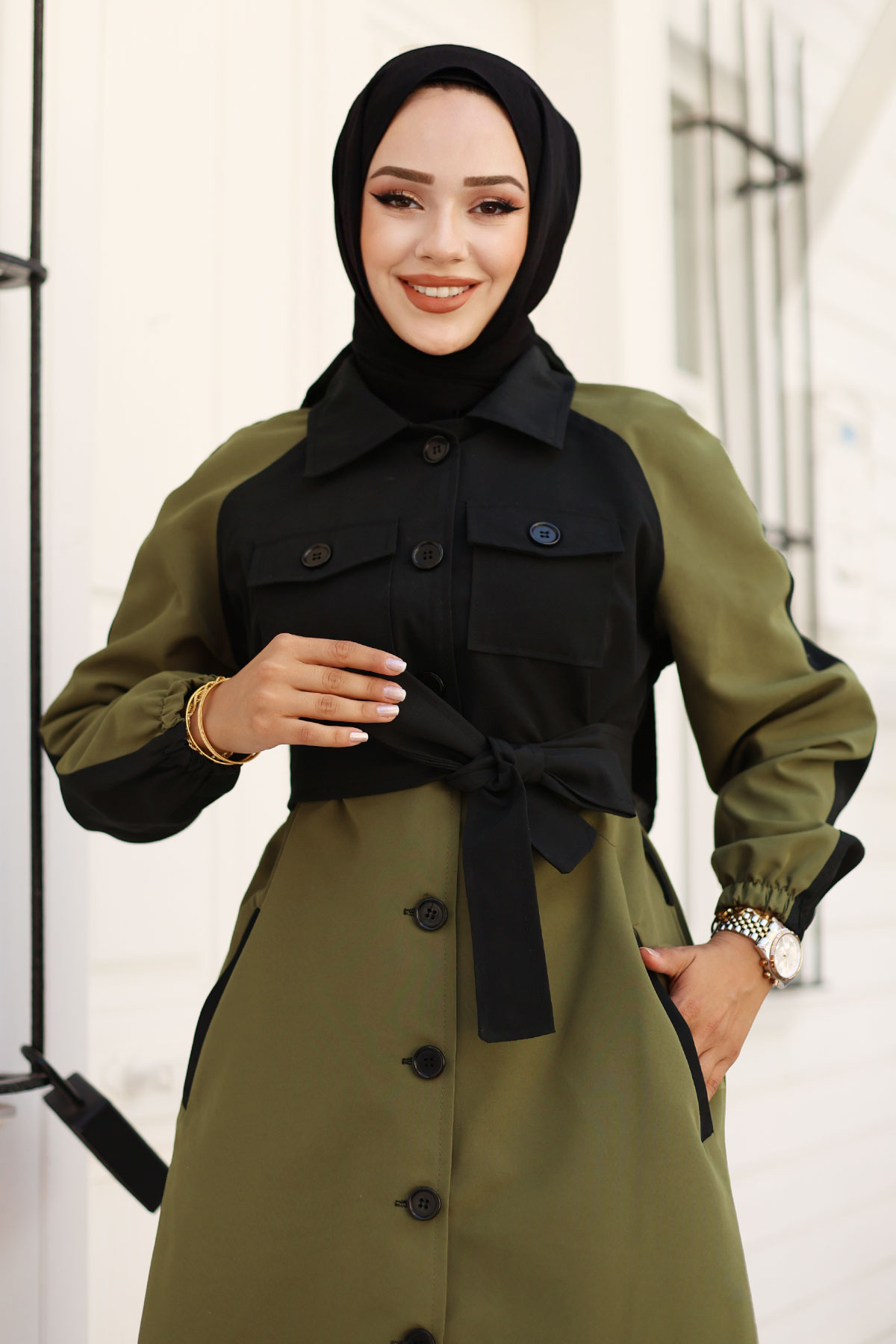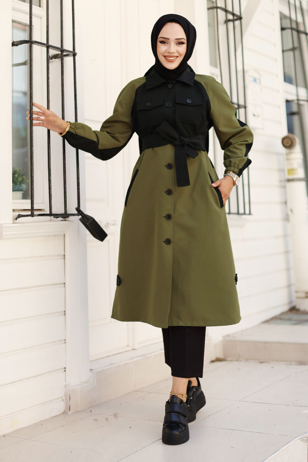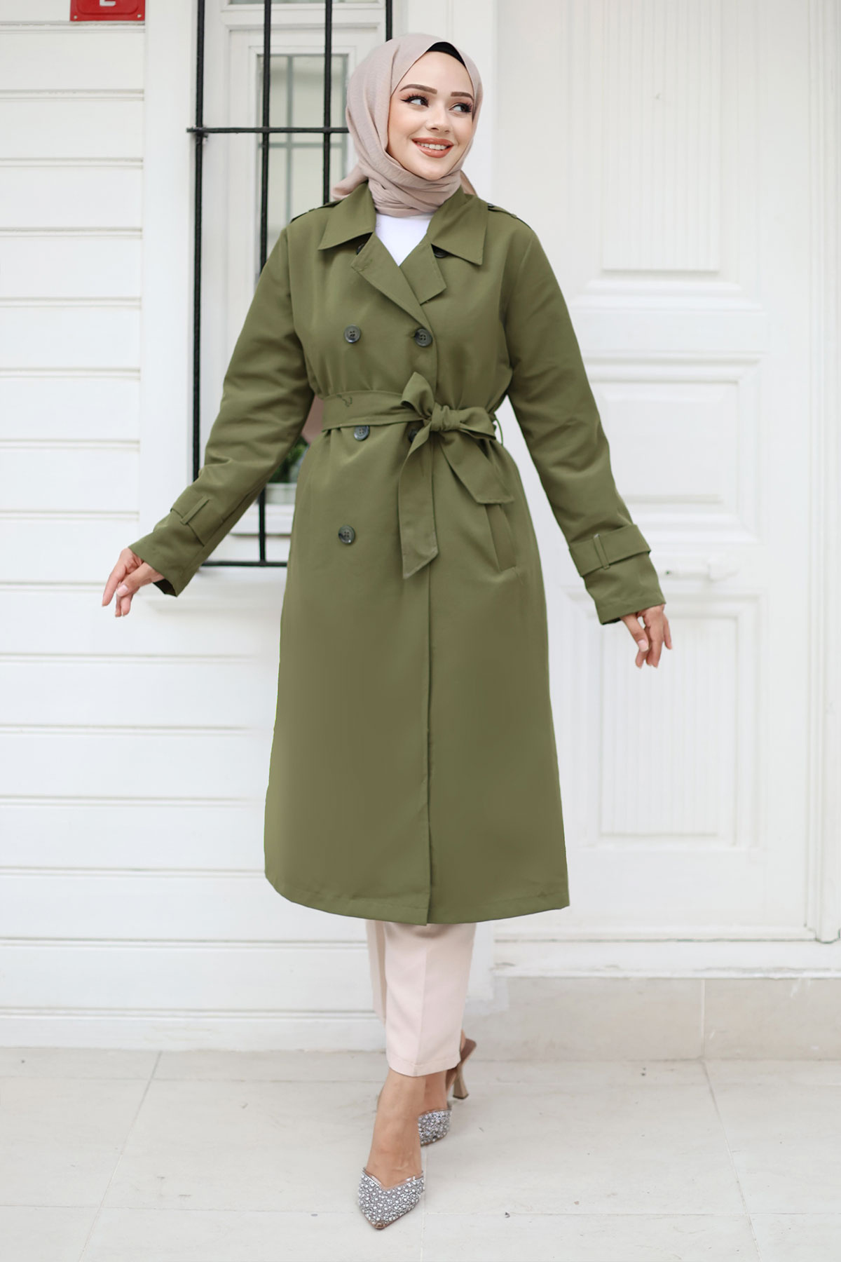 Kol Ucu Lastikli Çift Renkli Trençkot TSD240812 Yeşil Kol Ucu Lastikli Çift Renkli Trençkot TSD240812 Yeşil 50